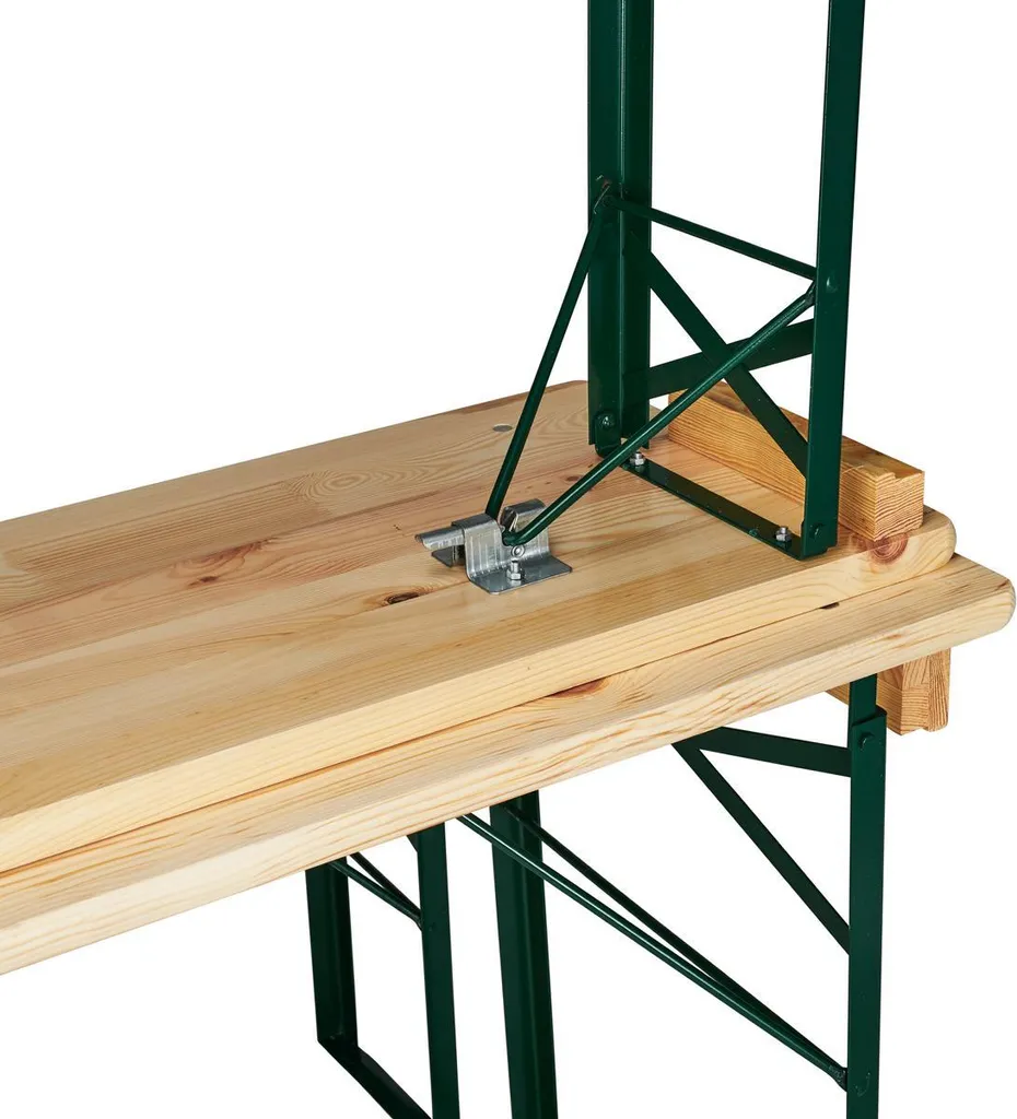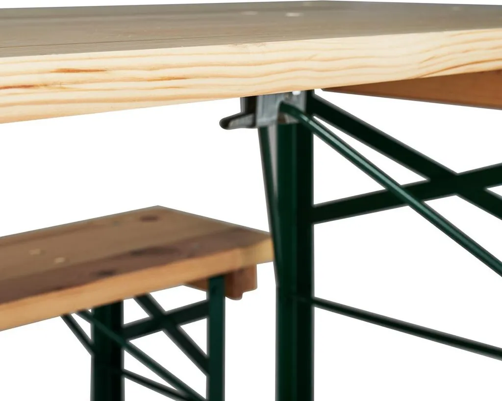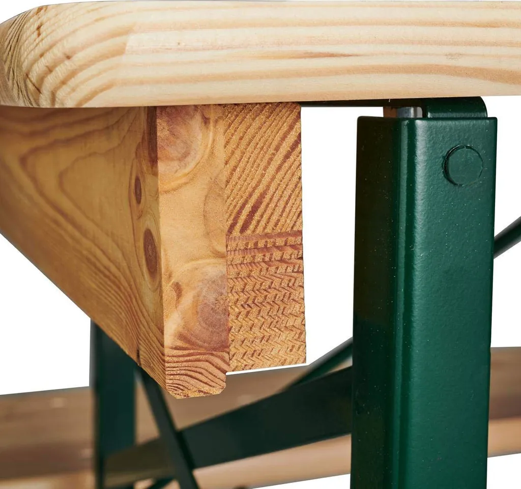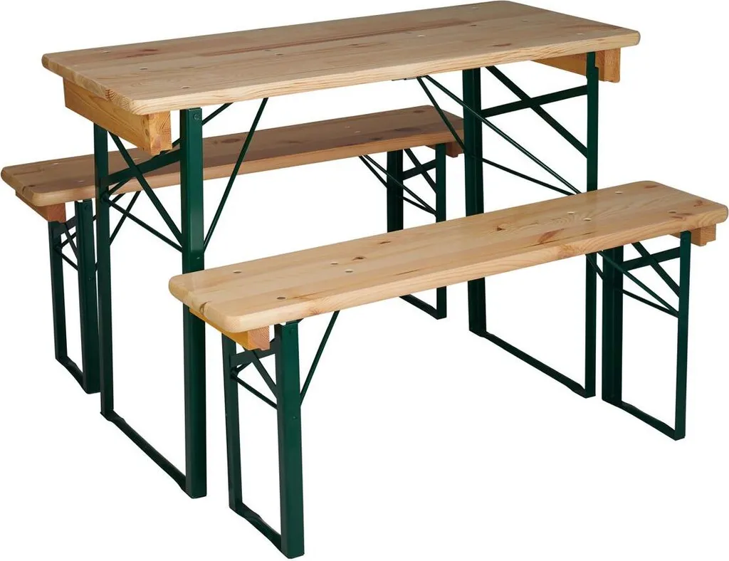 Die Fest- und Bierzeltgarnitur, bestehend aus zwei Bänken und einem Tisch, ist das ideale und praktische Möbelstück für Feierlichkeiten im Freien. Die Garnitur aus Nadelholz hat ein Maß von ca. Bänke als auch Tisch sind klappbar