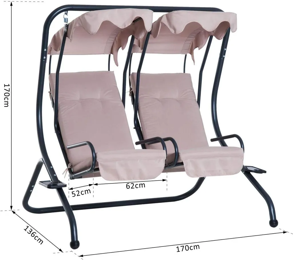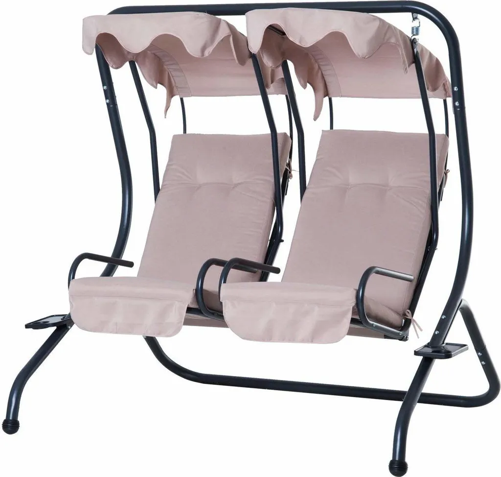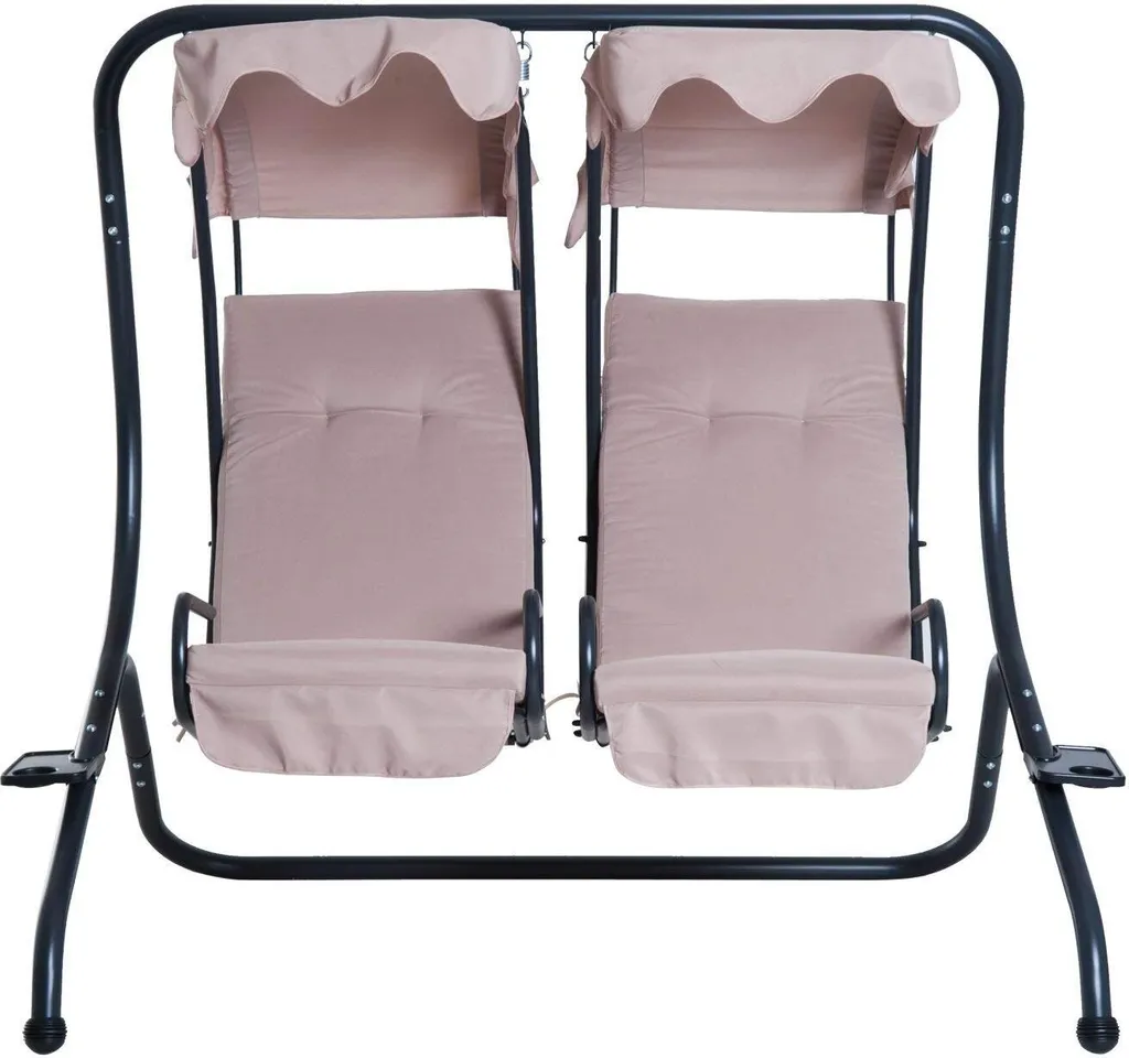 Genießen Sie romantische Augenblicke im Grünen. Mit Ihrer Outsunny Hollywoodschaukel werden Sommertage noch schöner. Der 2-Sitzer ist angenehm und weich gepolstert und mit strapazierfähigem Polyesterbezug versehen. Die zwei bequemen Sitzbänke sind außerdem überdacht, damit Sie sich im bequemen Schatten entspannen können. Das Stahlgestell ist wertig und trotzt der Witterung. Damit eignet sich Ihre Hollywoodschaukel perfekt für den Einsatz im Garten oder auf der Terrasse. Clever auch die beiden Tabletts samt Getränkehaltern. So haben sie Ihr Glas Wein oder ein erfrischendes Kaltgetränk stets griffbereit. Für unvergessliche Stunden.