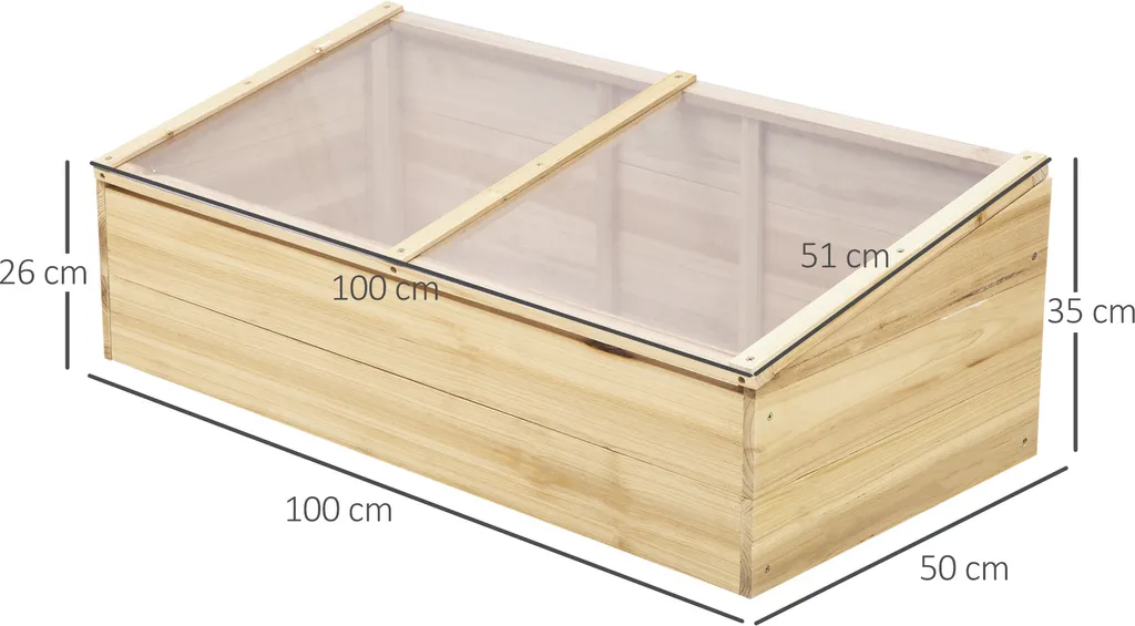 Dieses außergewöhnliche Holzgewächshaus von Outsunny hilft Ihren Pflanzen zu wachsen und gedeien. Der hochwertiger Massivholzrahmen bildet ein zuverlässiges kleines Treibhaushaus. Transparente Polykarbonatplatten ermöglichen maximale Lichtdurchlässigkeit bei gleichzeitiger Wärmespeicherung für den frühen Samenaustrieb oder zum Schutz der Pflanzen in der späten Saison. Dieses Gewächshaus bietet einen Raum mit idealer Temperatur, Ihre Pflanzen können das Sonnenlicht genießen und gesund wachsen.