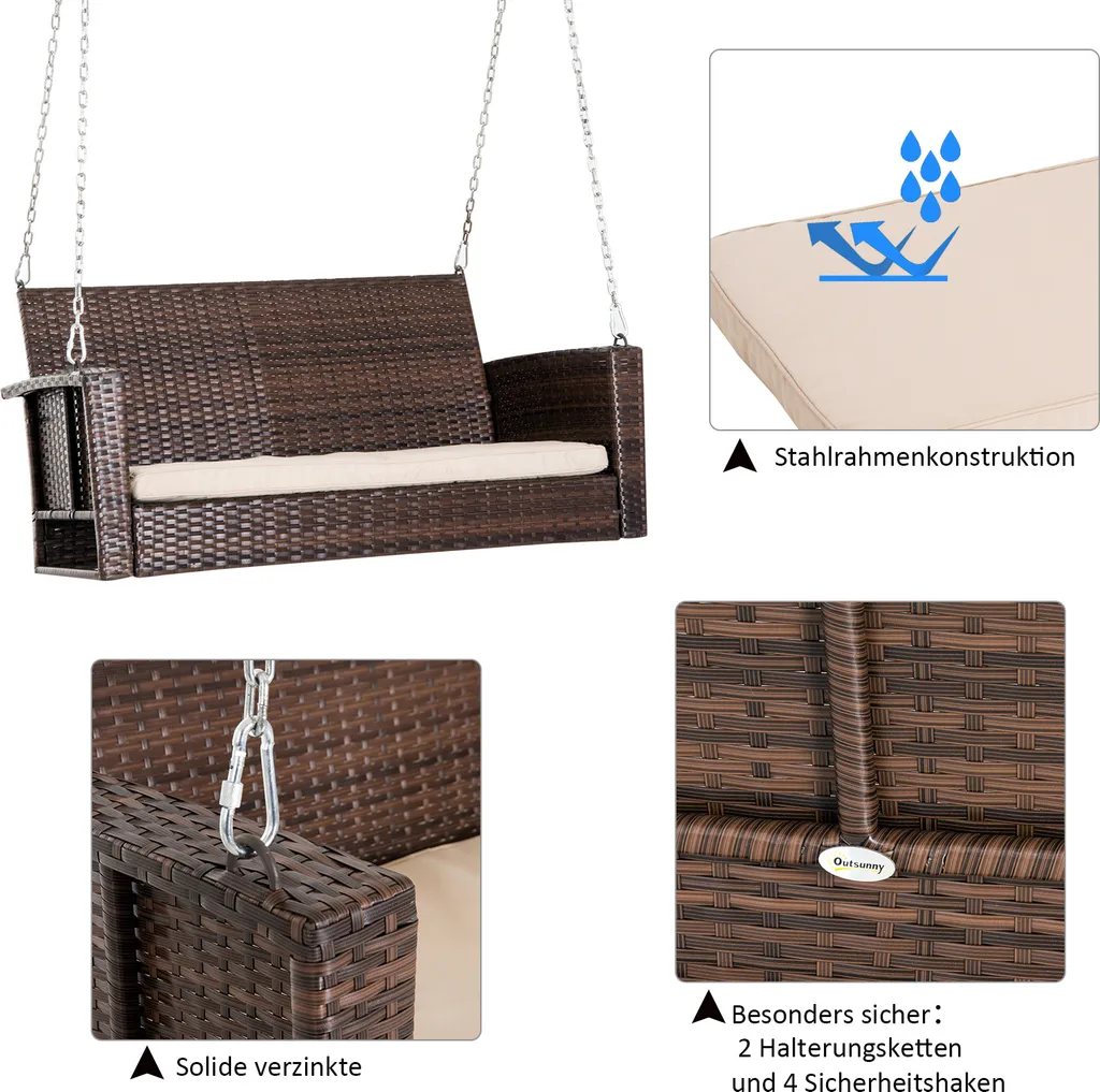 Genießen Sie das schöne Wetter mit Ihren Freunden und Ihrer Familie und entspannen Sie sich auf unserer Outsunny Hängebank. Nehmen Sie Platz und lassen Sie sich vom beruhigenden Schaukeln sanft hin und her wiegen. Die Sitze sind für einen unglaublich bequemen Sitzwinkel gebogen und haben Armlehnen zur Unterstützung, die das Gleiche tun. Die extra stark gepolsterte Sitzfläche vervollständigt Ihr Sitzerlebnis, also lehnen Sie sich zurück, entspannen Sie sich.