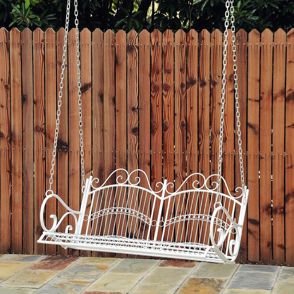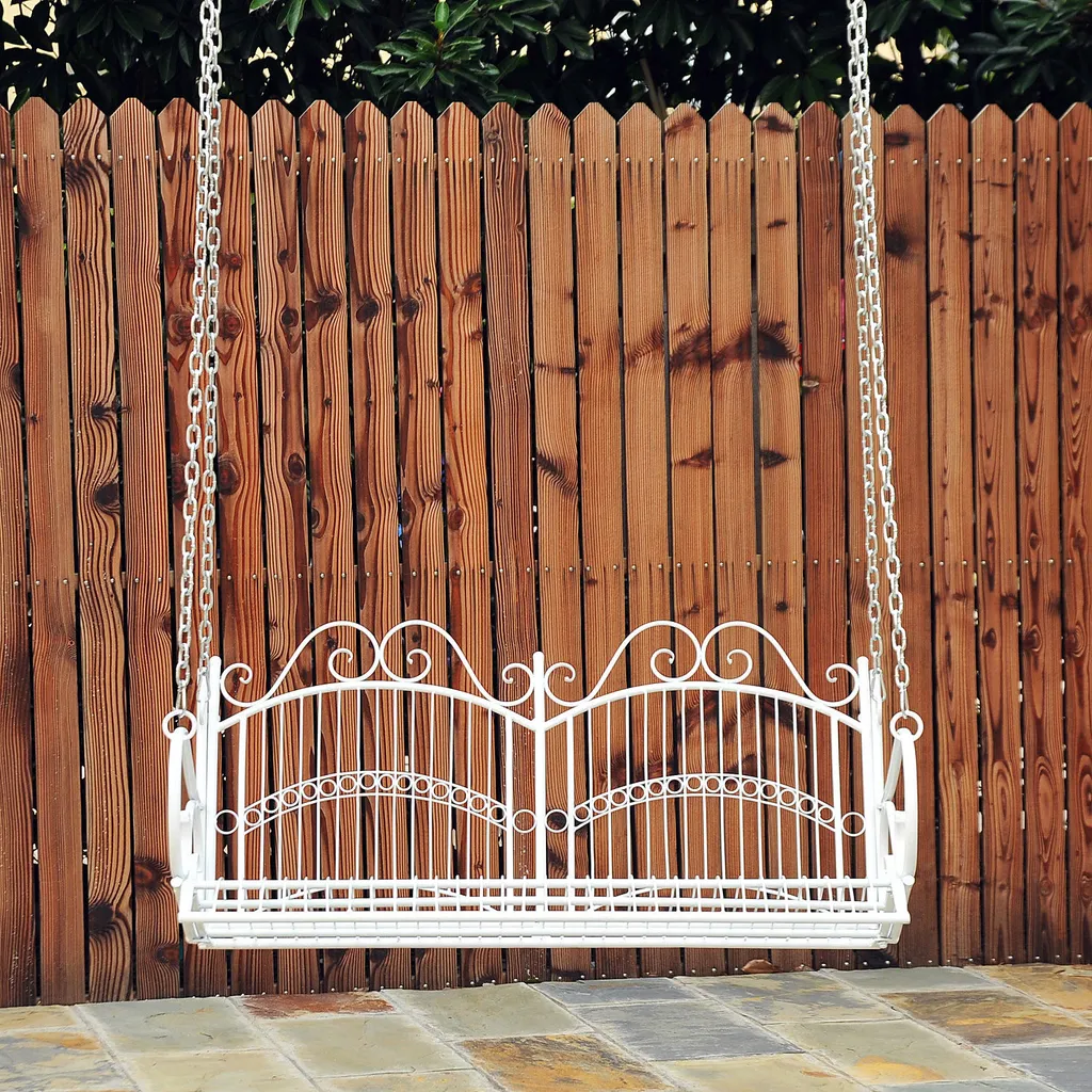Erfüllen Sie sich Ihren Traum einer romantischen Hängebank. Die ist nämlich mehr als nur eine stilvoll weiße Dekoration für Ihren Garten. Genießen Sie warme Sommertage und entspannte Sonnenuntergänge auf Ihrer Terrasse. Die bequeme Sitzfläche der Hollywoodschaukel bietet Platz für bis zu zwei Personen. Und dank des robusten Metallgestells ist Sie ein verlässlicher und langlebiger Begleiter. Durch die zwei Metallketten mit Haken können Sie Ihre Gartenschaukel kinderleicht montieren. Für wundervolle Tage in Ihrem grünen Paradies.