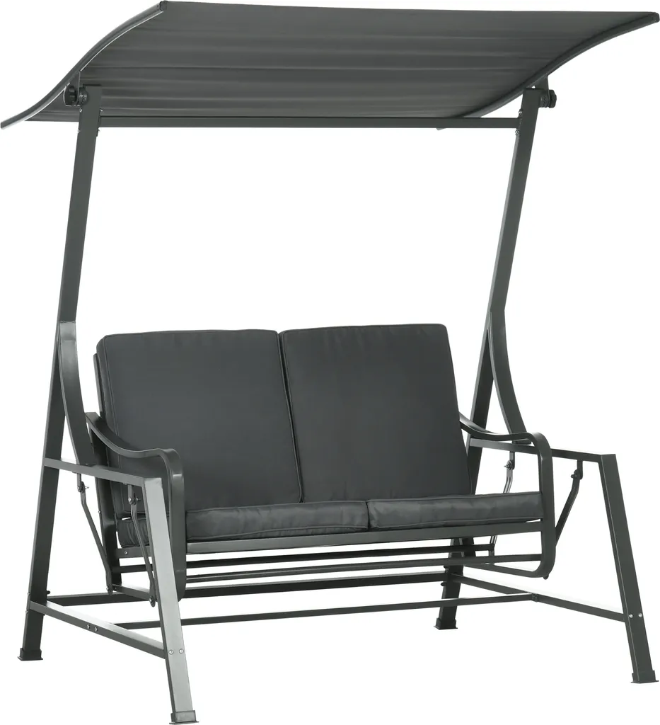 Diese moderne Hollywoodschaukel von Outsunny lässt Sie komfortabel die Natur Ihres Gartens genießen! Dank ihrer neutralen Farbe passt sie perfekt in Ihren Garten, Ihre Veranda oder Ihren Hof. Die sanfte Gleitbewegung, die geschwungene Armlehne, der gepolsterte Sitz und die bequeme Rückenlehne sorgen für hohen Komfort beim Entspannen und Faulenzen. Holen Sie sich diese Schaukelbank in den Garten und genießen Sie eine erfrischende Brise, mit Ihrem Lieblingsgetränk in der Hand.