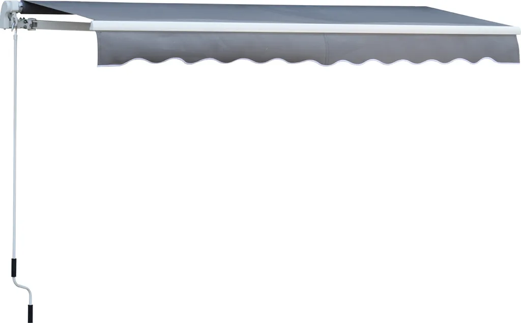 Sie ist aus robustem Polyester mit wasserabweisender PolyurethanBeschichtung gefertigt und mit zwei Halterungen aus Metall sowie einer Handkurbel zur einfachen Bedienung versehen. Die Markise gibt es in unterschiedlichen Größen, wobei alle für die Wandmontage geeignet sind.