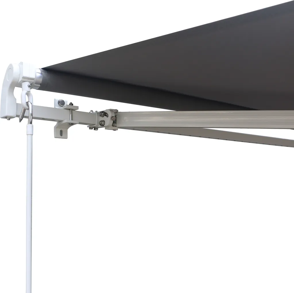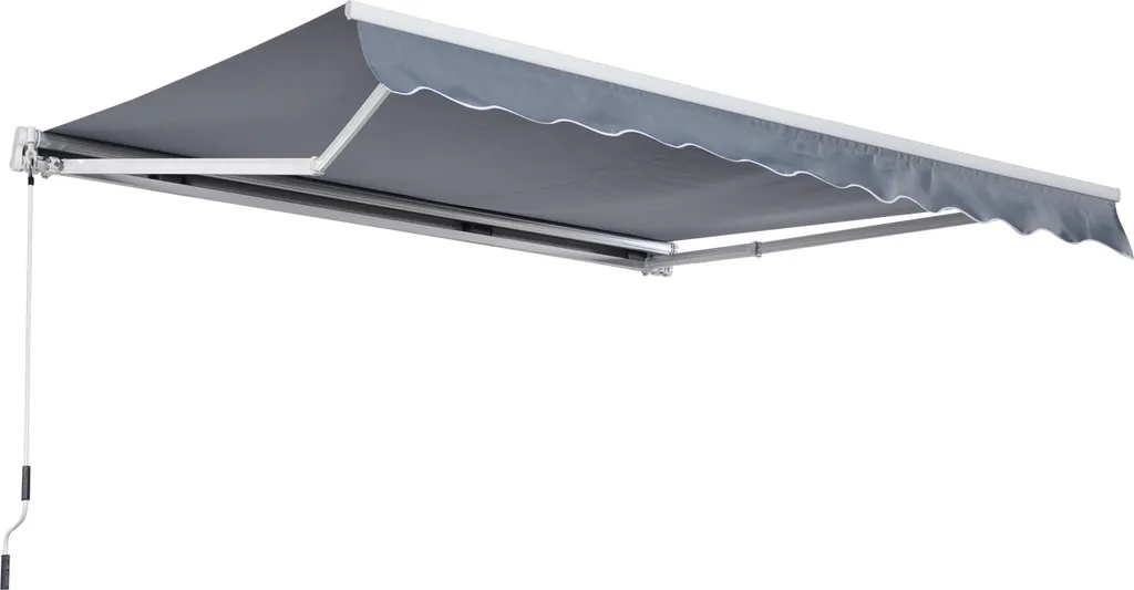 Unsere Markise von Outsunny ist für den Außenbereich wie Balkon oder Terrasse bestens geeignet. Der Markisenstoff ist aus robustem Polyester mit wasserabweisender PolyurethanBeschichtung gefertigt und besitzt deshalb hohe Witterungsbeständigkeit. Dank der Handkurbel können Sie Ihre Markise unbeschwert bedienen. Die Wandmontage gestaltet sich denkbar einfach. Alle benötigten Materialien sind bereits im Lieferumfang enthalten. So haben Sie immer ein schattiges Plätzchen Zuhause. Da kann der Sommer kommen!