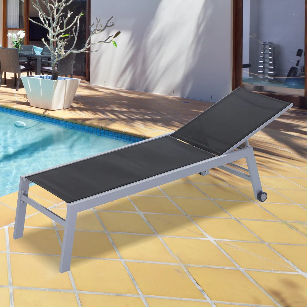 Gönnen Sie sich die Freiheit, sich mit Ihrem Lieblingsbuch zu entspannen oder ein Nickerchen in der Sommersonne zu machen mit dieser erfrischenden Chaiselongue! Diese Lounge besteht aus strapazierfähigem Aluminium mit einem speziellen Netzstoff für den Sitz und ist sowohl komfortabel als auch stilvoll. Sie ist wetterbeständig und äußerst langlebig. Sie können jahrelang zuverlässig verwendet werden. Die Rückenlehne kann so eingestellt werden, dass Sie immer die bequemste Position finden. Diese leicht zu reinigende und wartungsarme Liege kombiniert Stil und Funktionalität und verleiht Ihrer Terrasse, Ihrem Garten oder anderen Außenbereichen einen Hauch von rustikalem Charme.
