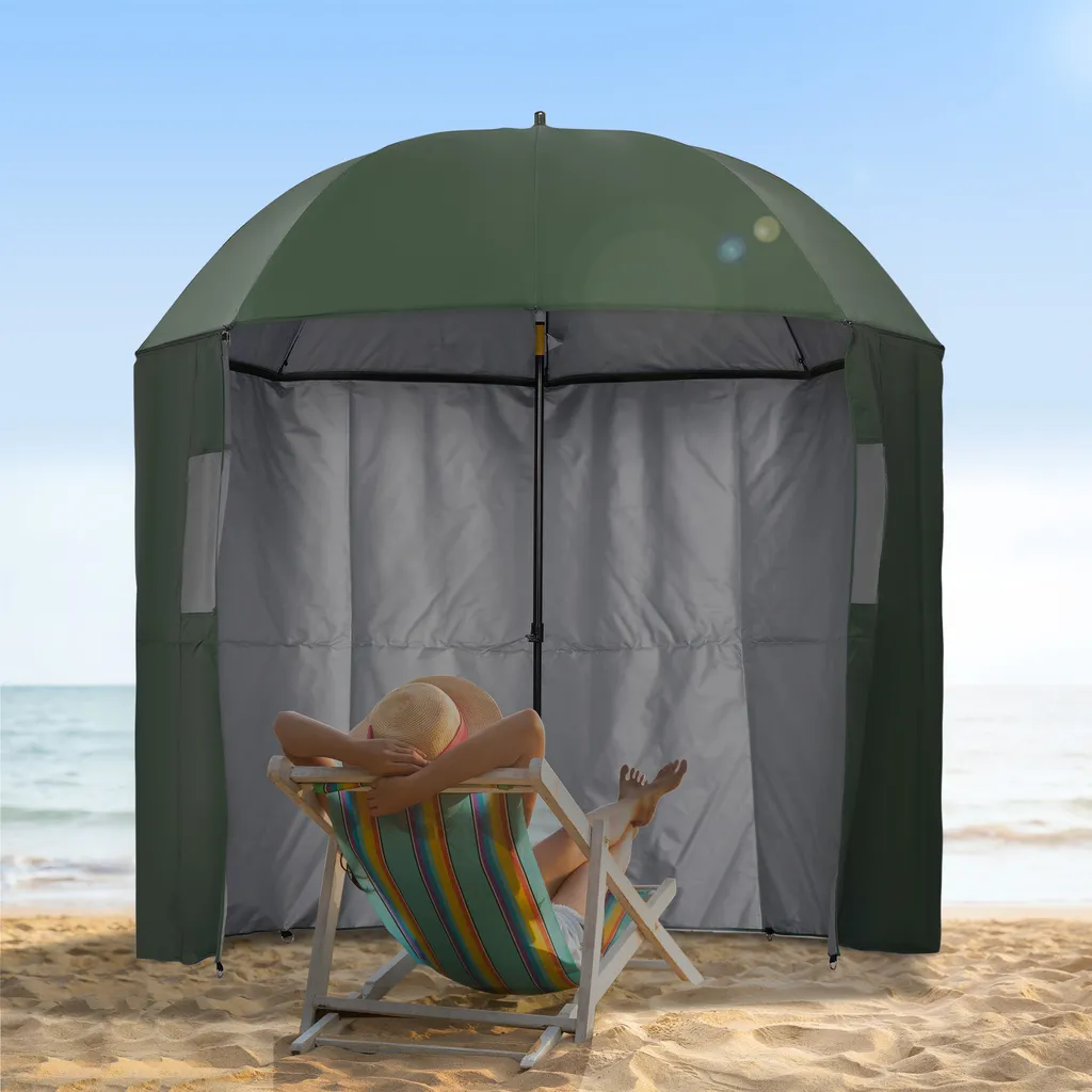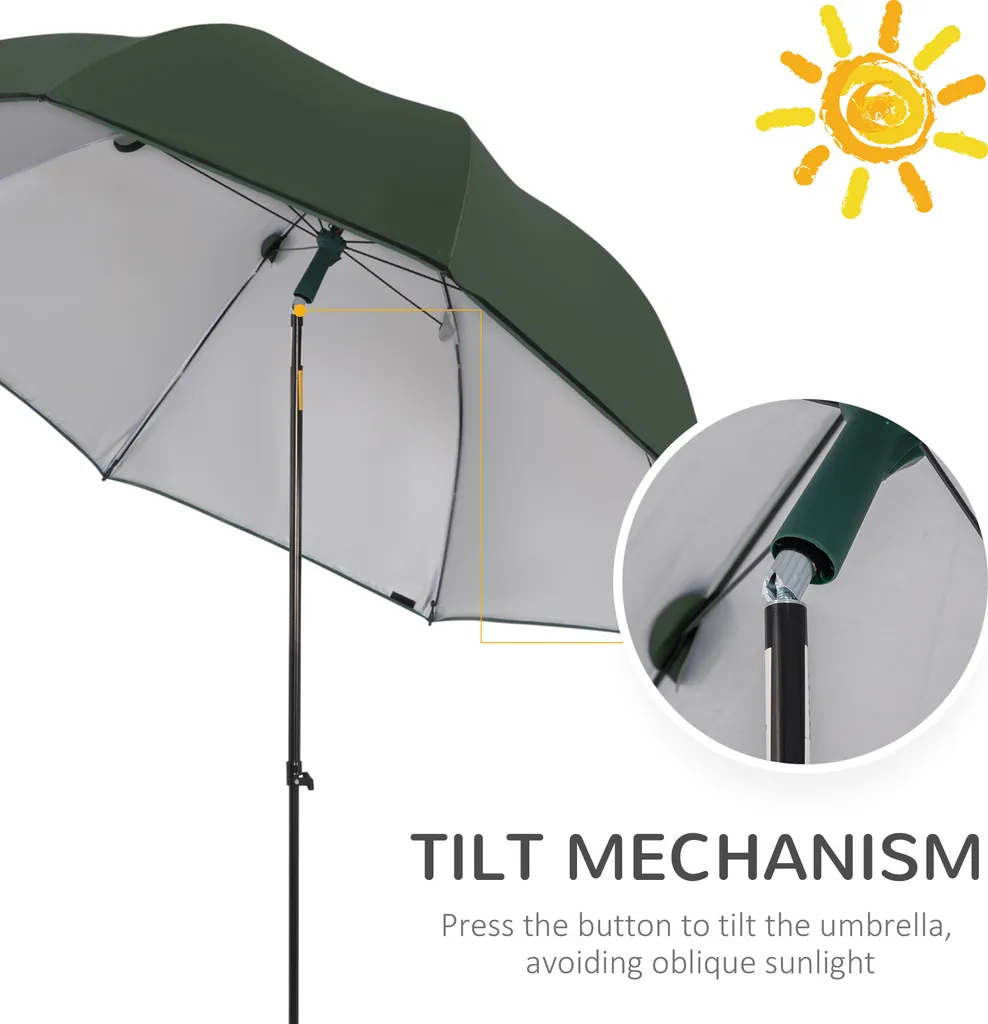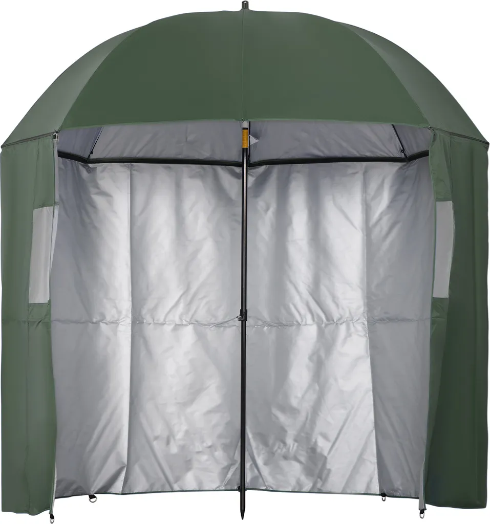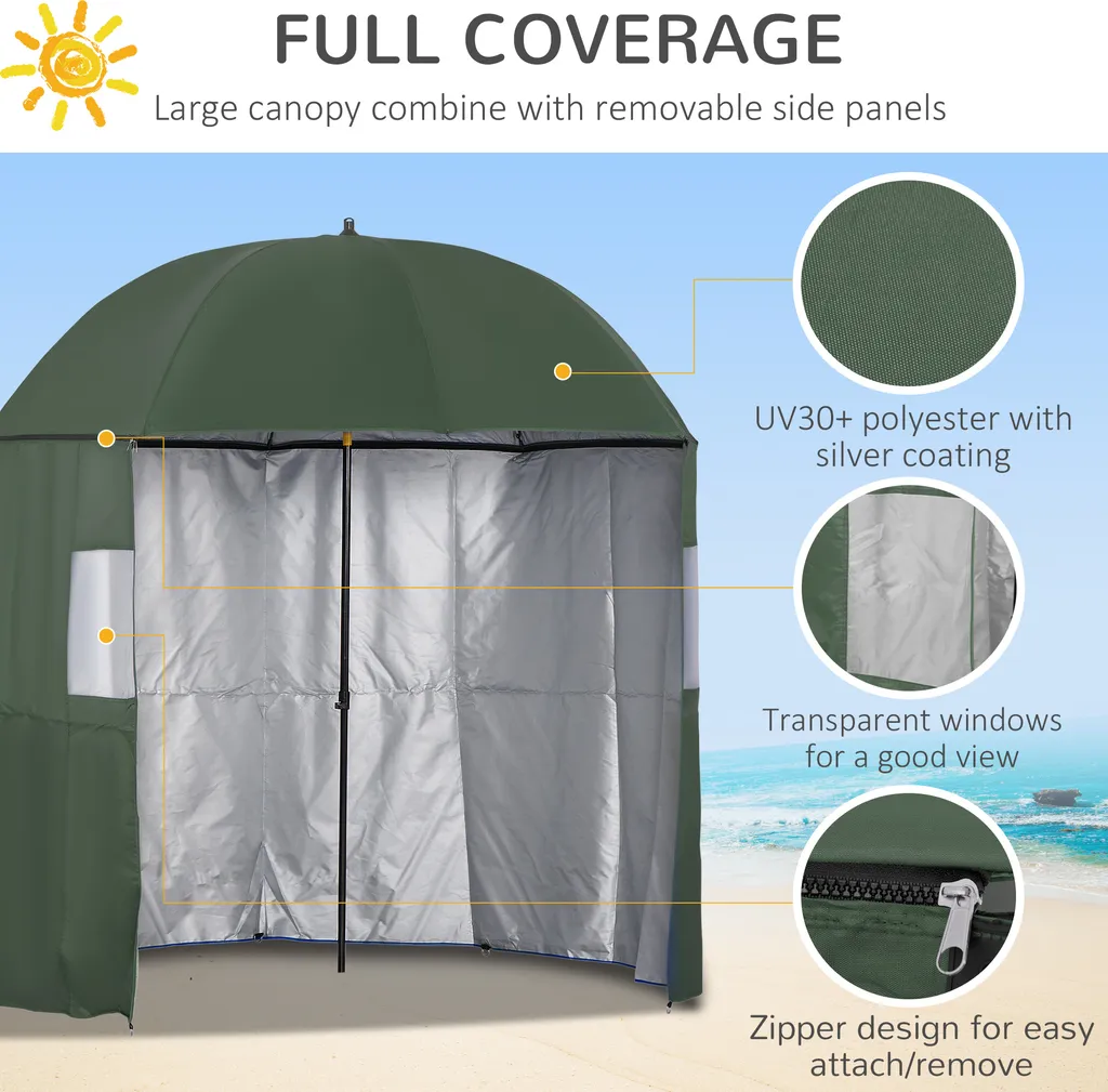 Sonnige Tage sind großartig, aber manchmal möchte man sich einfach im Schatten entspannen. Dieser Sonnenschirm von Outsunny bildet den idealen Sonnenschutz für den Strand oder beim Angeln. Praktische Seitenwände verleihen Ihnen zusätzlichen Schutz vor UV-Strahlen und zwei Fenster eröffnen einen freien Blick auf die Umgebung. Der Schirm lässt sich in verschiedene Positionen neigen, sodass Sie ihn bequem an den Sonnenstand anpassen können. Für eine höhere Stabilität sorgen Heringe und Spannseile.