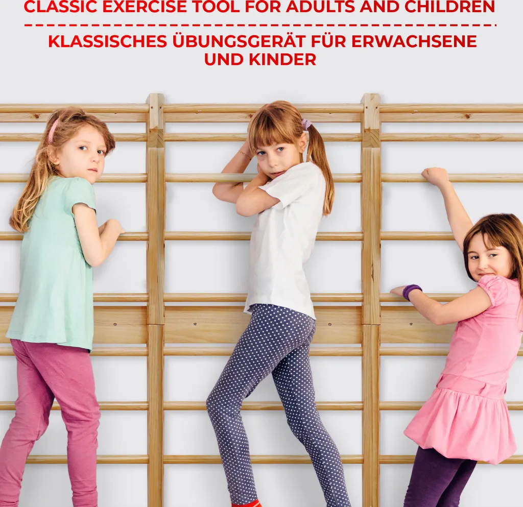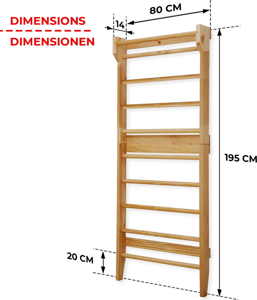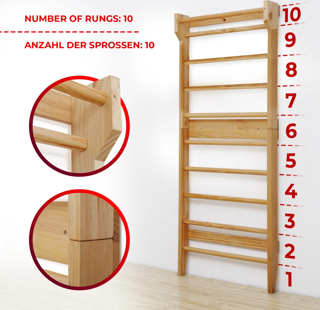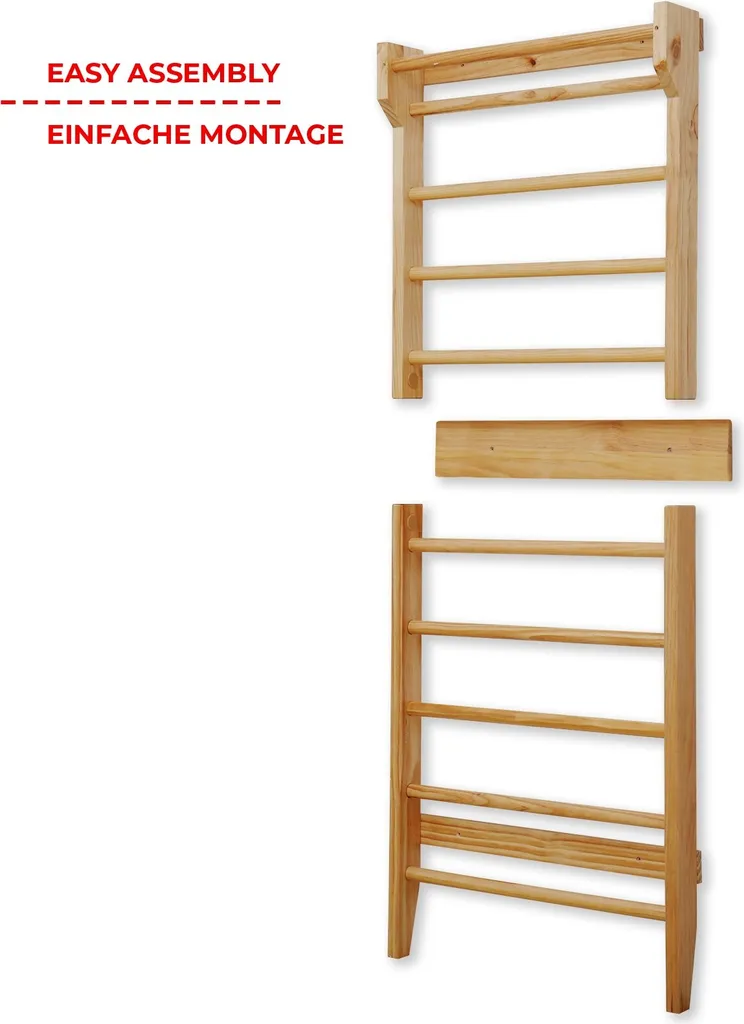 - Stabile Sprossenwand aus Massivholz (Kiefer)