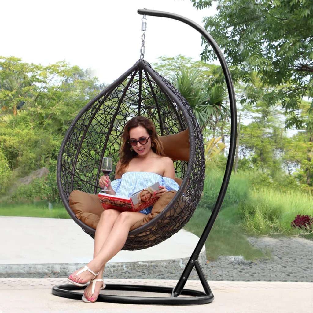 Der freischwingende Hängesessel ist äußerst strapazierfähig und wetterbeständig. Elegant geformt und in einem dezenten anthrazit Ton gehalten, passt er in jedes Ambiente. Das Metallgestell ist standsicher und extra stabil ausgeführt, während die gefederte Aufhängung diesen Sessel noch komfortabler macht. Einmal Platz genommen, werden Sie diesen Hängesessel nicht mehr missen wollen.