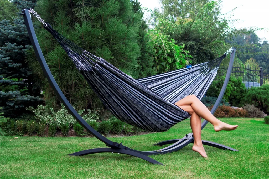 ✔️ Bequeme Hängematte aus Baumwolle mit Ständer. Dank einer überdurchschnittlichen Liegefläche sichert sie komfortable Erholung für zwei Personen. Groß, stabil, gut verarbeitet – so lässt sich dieses Produkt beschreiben.
