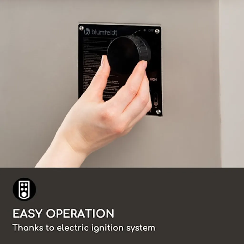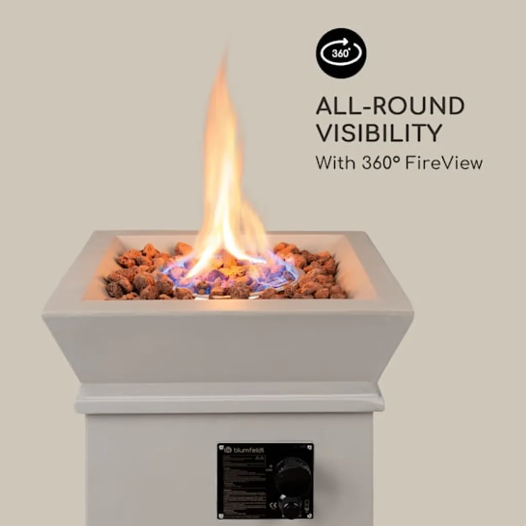 Für Terrasse, Veranda oder Garten: Gas-Feuerstelle für wohlige Wärme, Leistungsstark: regulierbare Flamme mit bis zu 13 kW Wärmeleistung, Einfache Bedienung: dank elektrischem Zündsystem, Rundum einsehbar: mit 360° FireView, Gut versteckt: Stauraum für Schlauch, Druckminderer und Gasflasche, Dekorativ und funktional: mit Lavasteinen als Wärmespeicher, Sicher verwahrt: inklusive praktischem Regencover