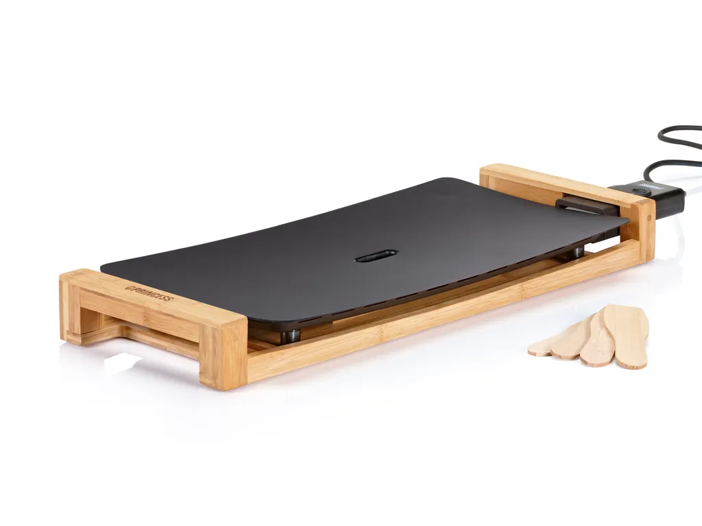 Möchten Sie Ihre Gäste mit einer Tischdekoration überraschen, die so trendig ist wie Sie? Dann entscheiden Sie sich für Princess Table Chef Pure Black. Mit diesem n Tischgrill mit trendigem Bambusgestell speisen Sie mit Stil. Dank der extragroßen Grillfläche können Sie mit Ihrer Familie und Ihren Freunden köstlich speisen. Die Aluminiumgussbeschichtung sorgt für perfekte Wärmeverteilung und ist kratzfest. Dank des gebogenen Designs wird alles Fett im Fettbehälter aufgefangen, damit Ihr Essen noch gesünder wird.