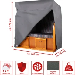 Strandkorb Schutzhülle – Bene Living – 170 Cm – Prestige Protect Größe XXL – Dunkelgrau – Witterungsbeständig + Atmungsaktiv