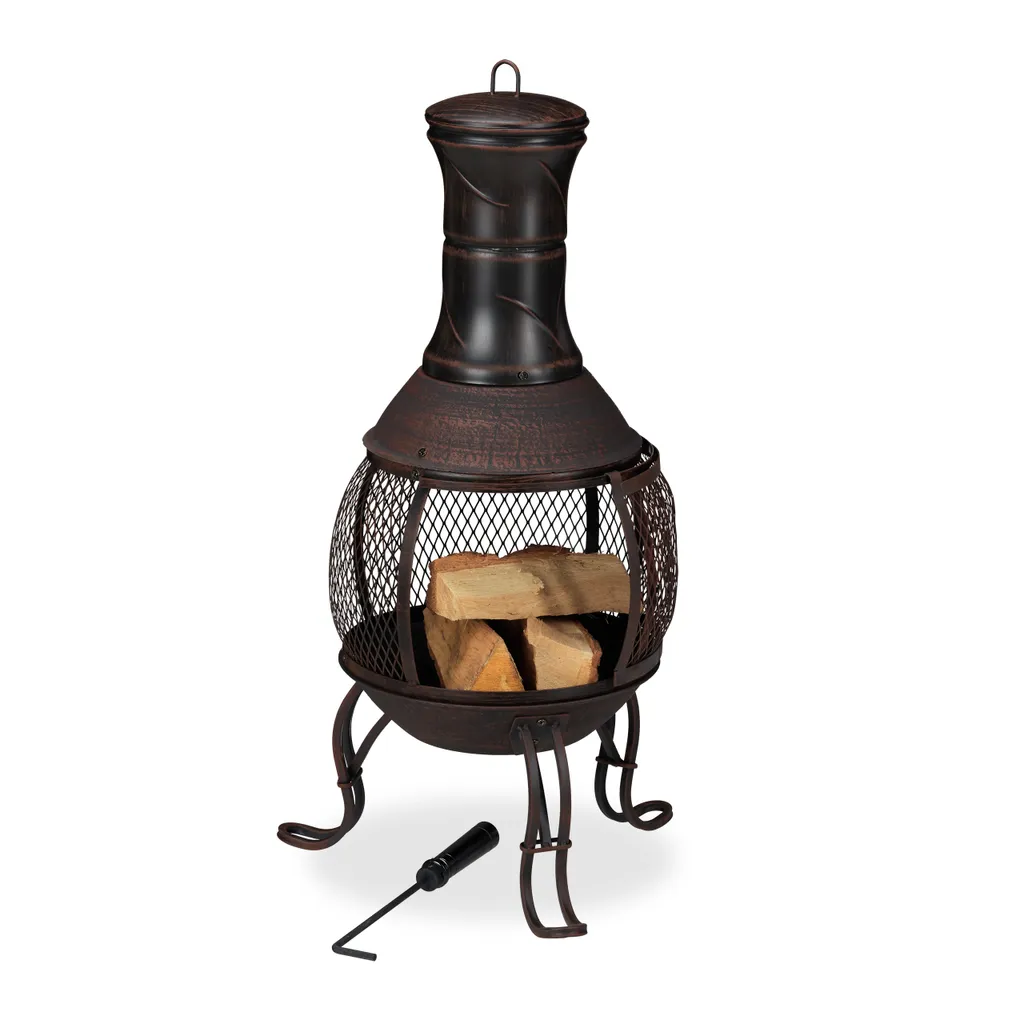 Was gibt es Schöneres als sich an einem Sommerabend mit Familie oder Freunden um ein prasselndes Feuer zu setzen? Der Gartenofen im Inka-Design mit geschwungenen Beinen schenkt nicht nur Wärme, sondern ist auch ein echter Hingucker. Das Funkenschutzgitter hemmt gefährlichen Funkenflug. Zum Nachlegen von Holz lässt sich die Tür mit dem Schürhaken auf- und zuschieben. Der Terrassenkamin ist der ideale Wärmespender für Partys im Freien.