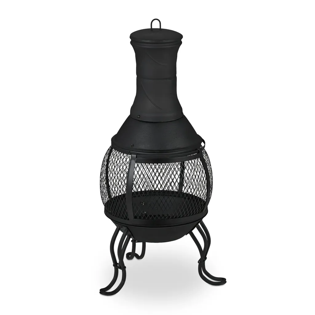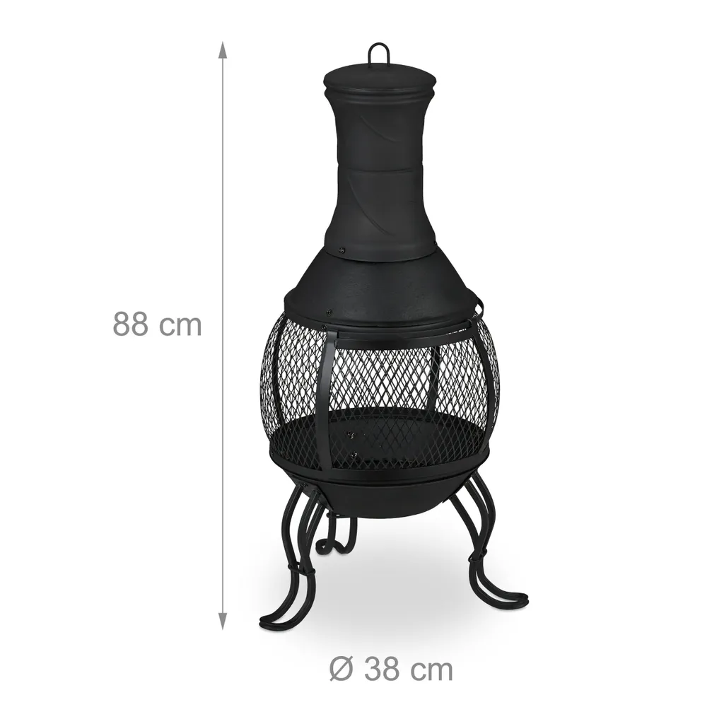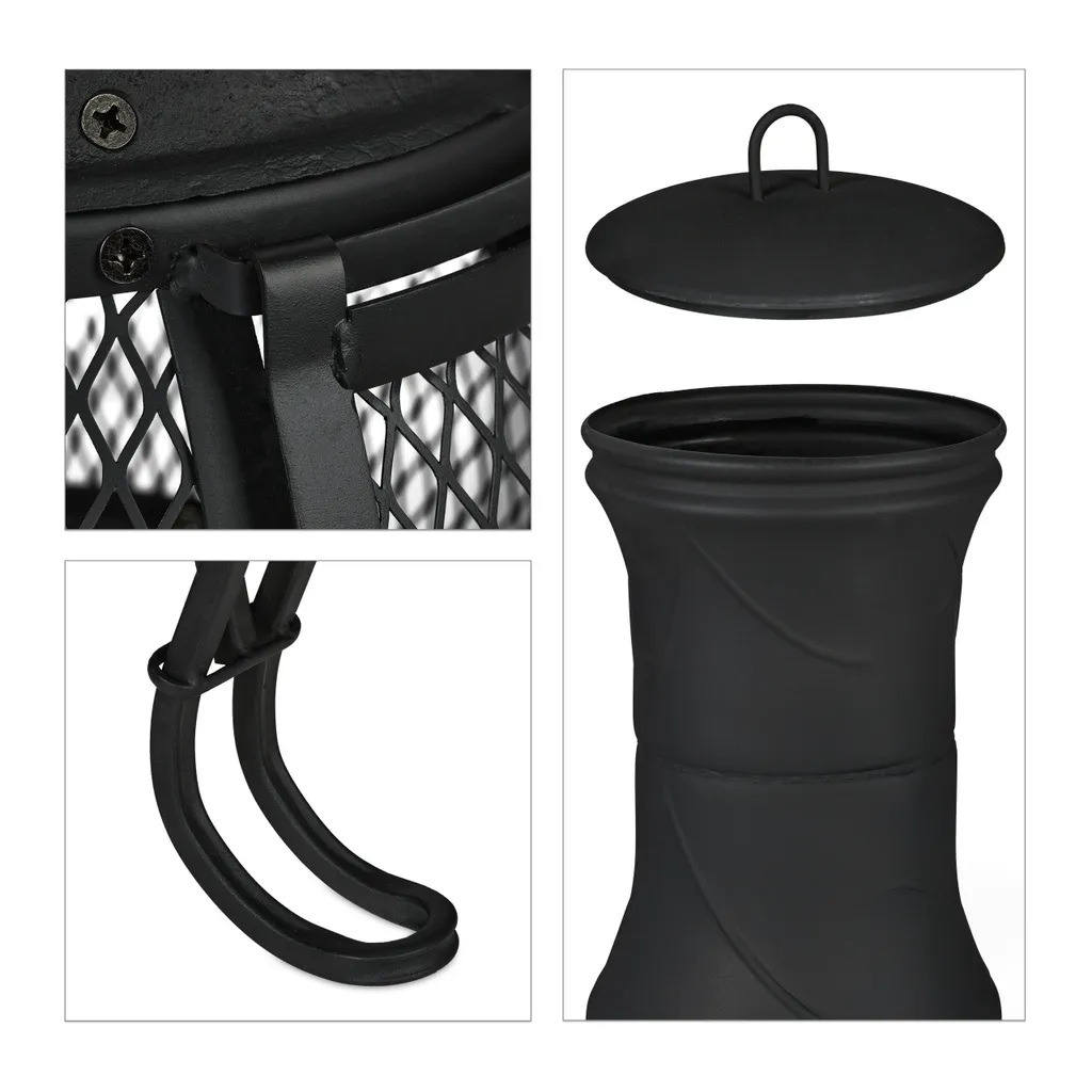 – Robuster Chiminea in Schwarz mit dekorativen Details