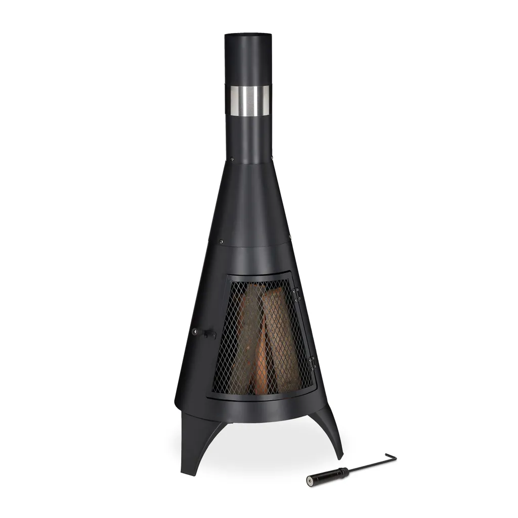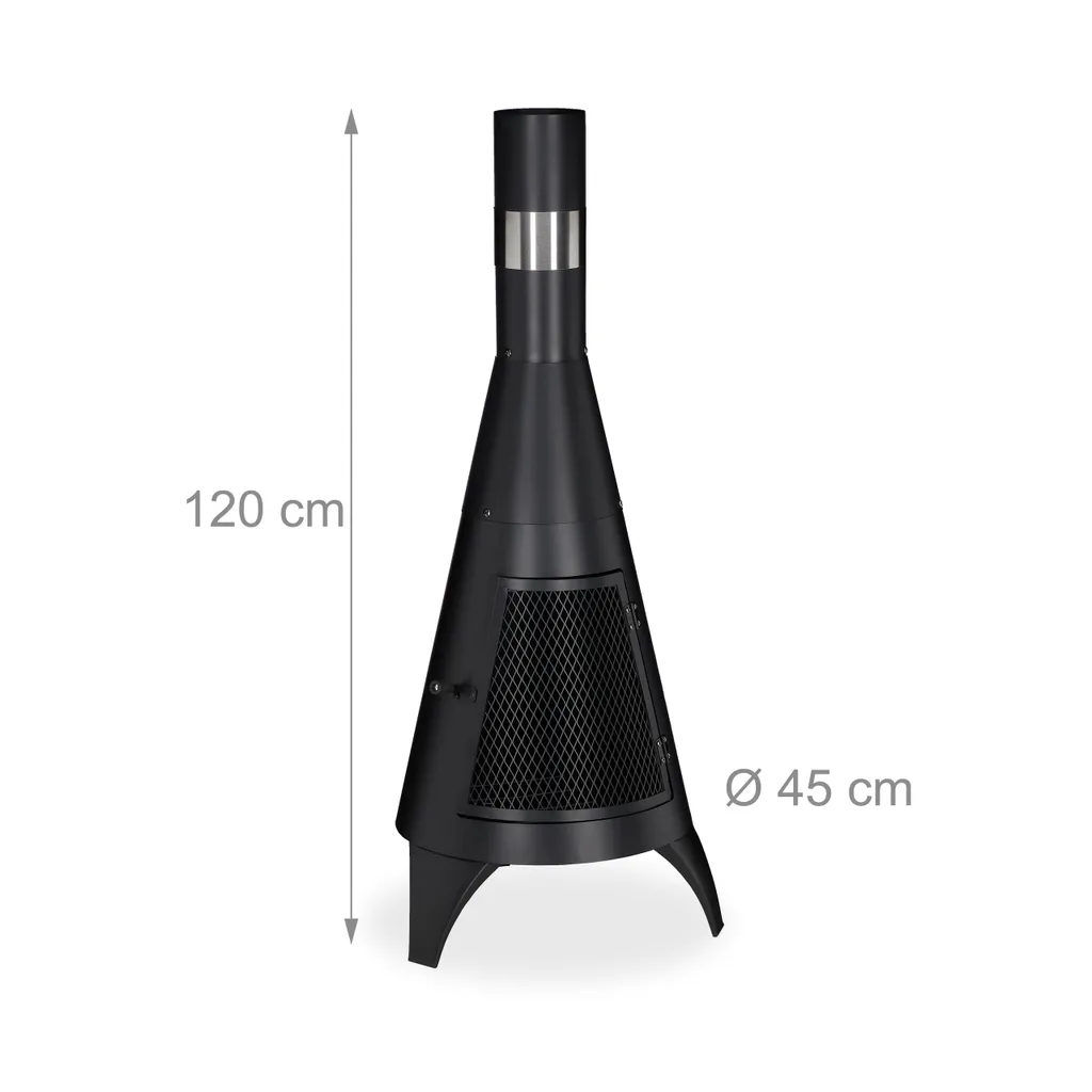 Mit dem Terrassenofen können Sie sowohl im Winter als auch im Sommer schöne Stunden im Freien verbringen. Der hitzeleitende Stahl strahlt in kalten Stunden Wärme ab, während das leuchtende Feuer Ihre Terrasse so richtig gemütlich macht. Die Holzscheite werden auf dem einlegbaren Gitter platziert, sodass sie genügend Luftzufuhr bekommen, um zu einem kleinen Lagerfeuer zu werden. Der Rauch zieht durch die hohe Säule nach oben ab, ohne Ihnen die Sicht zu nehmen. Die Gitter-Tür schützt vor Funkenflug und lässt Sie dennoch einen Blick auf die lodernden Holzscheite werfen.