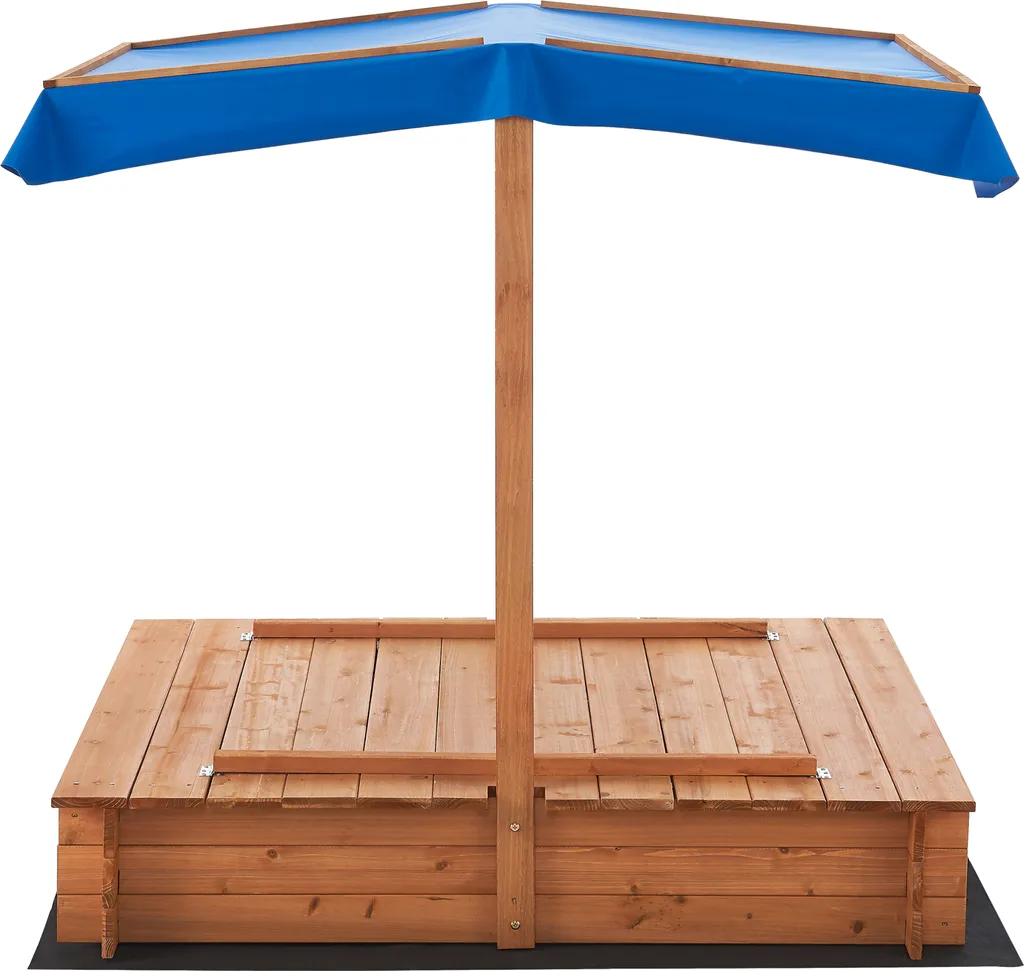 Der praktische Holzsandkasten ist nicht nur ein Spielparadies für Ihre Kinder, sondern bietet zusätzlich auch eine Sitzmöglichkeit. Die Bänke lassen sich als Sandkastenabdeckung auf- und zuklappen.