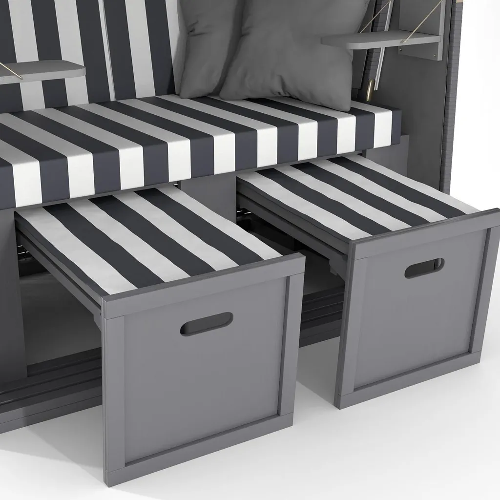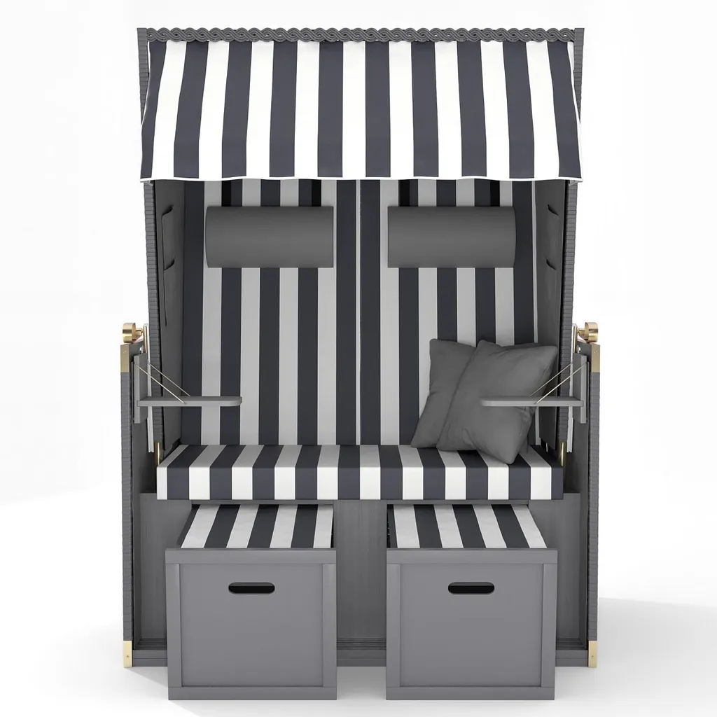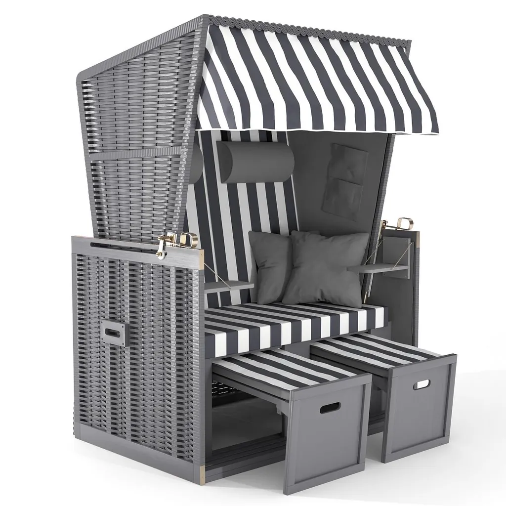 Mit diesem komfortablen Strandkorb können Sie so richtig schön relaxen und sich echtes Nord-/Ostseefeeling nach Hause holen. Der Strandkorb bietet alle Extras, die eine Wohlfühloase haben muss, und kann dank der ausziehbaren Fußstützen und des verstellbaren Oberkorbs zu einer Volliege umfunktioniert werden.