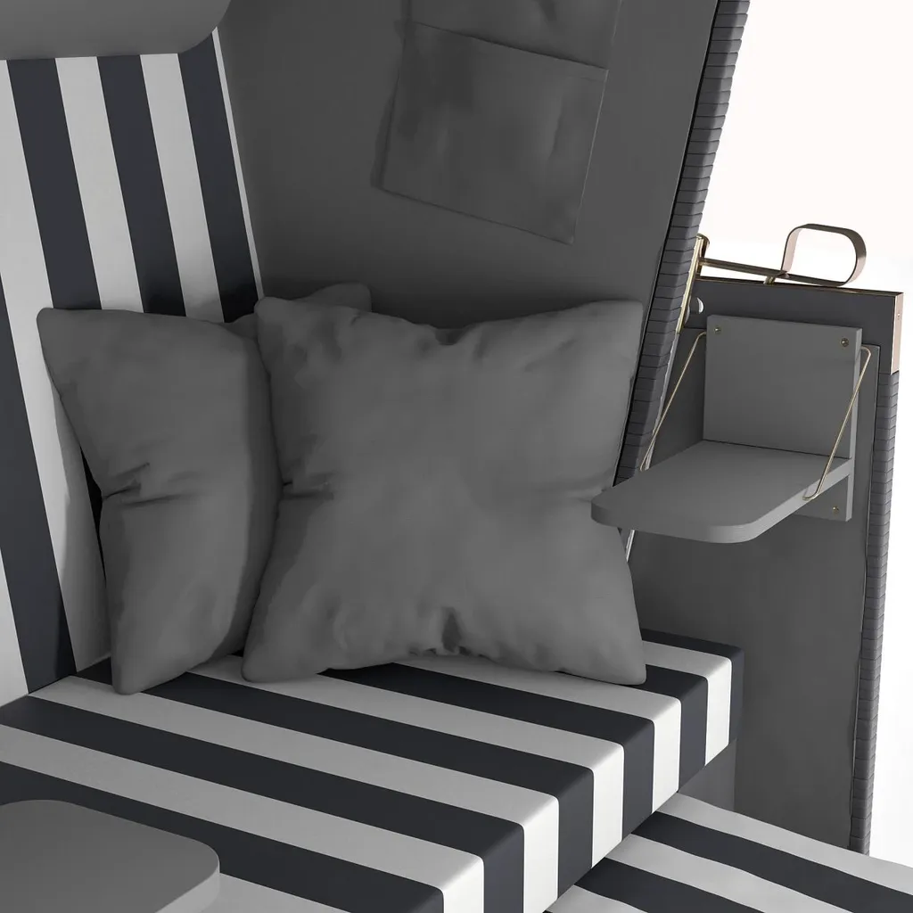 Sanzaro Strandkorb XL120 cm Deluxe Zweisitzer Holz und Poly-Rattan Volllieger 4 x Kissen klappbare Rückenlehne 2 Personen Grau-Weiss Blockstreifen