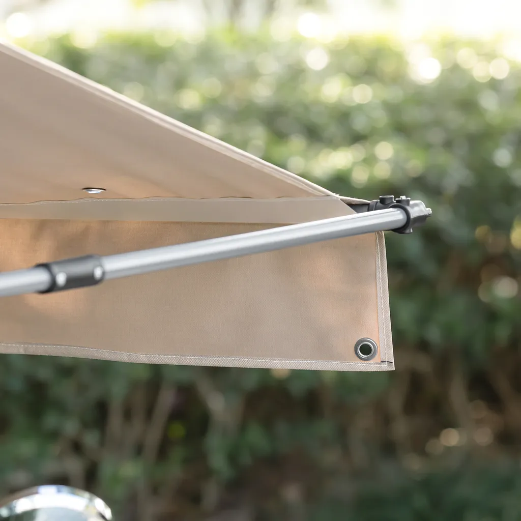 - Material: Stangen aus Aluminium und Planen aus Polyester.
