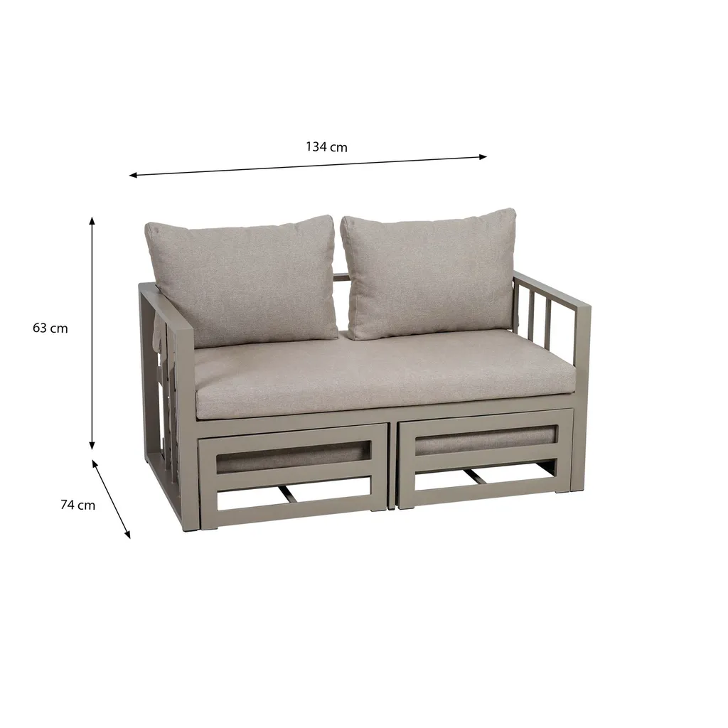 - Sofa: ca. 134 x 63 x 74 cm, Sitzmaße: ca. 124 x 35,5 x 69 cm, Hocker: ca. 57 x 35,5 x 68 cm, ausgezogen: ca. 134 x 63 x 130 cm, max. Belastbarkeit: 2x 110 kg, Gewicht: ca. 25 kg