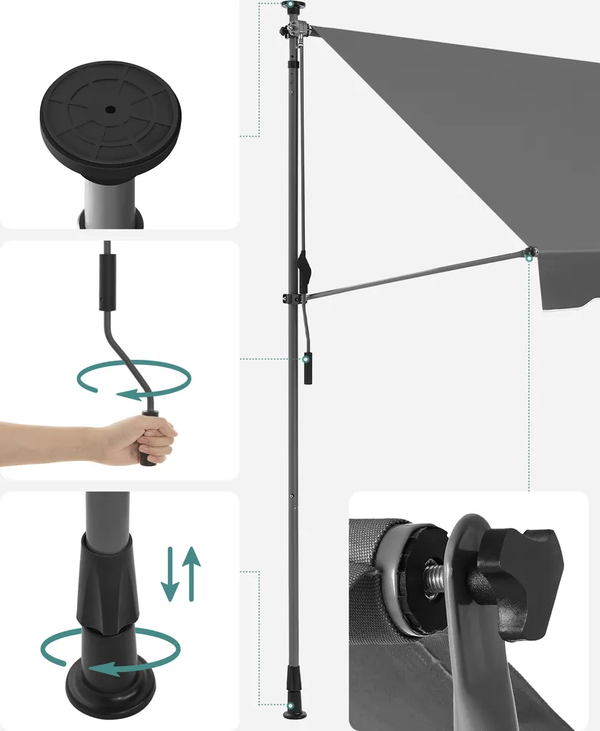 Was Sie bekommen: Eine 300 x 130 cm große, höhenverstellbare Balkonmarkise von SONGMICS, deren Winkel ebenfalls individuell eingestellt werden kann, sowie eine Möglichkeit, den Sommer im Schatten zu genießen