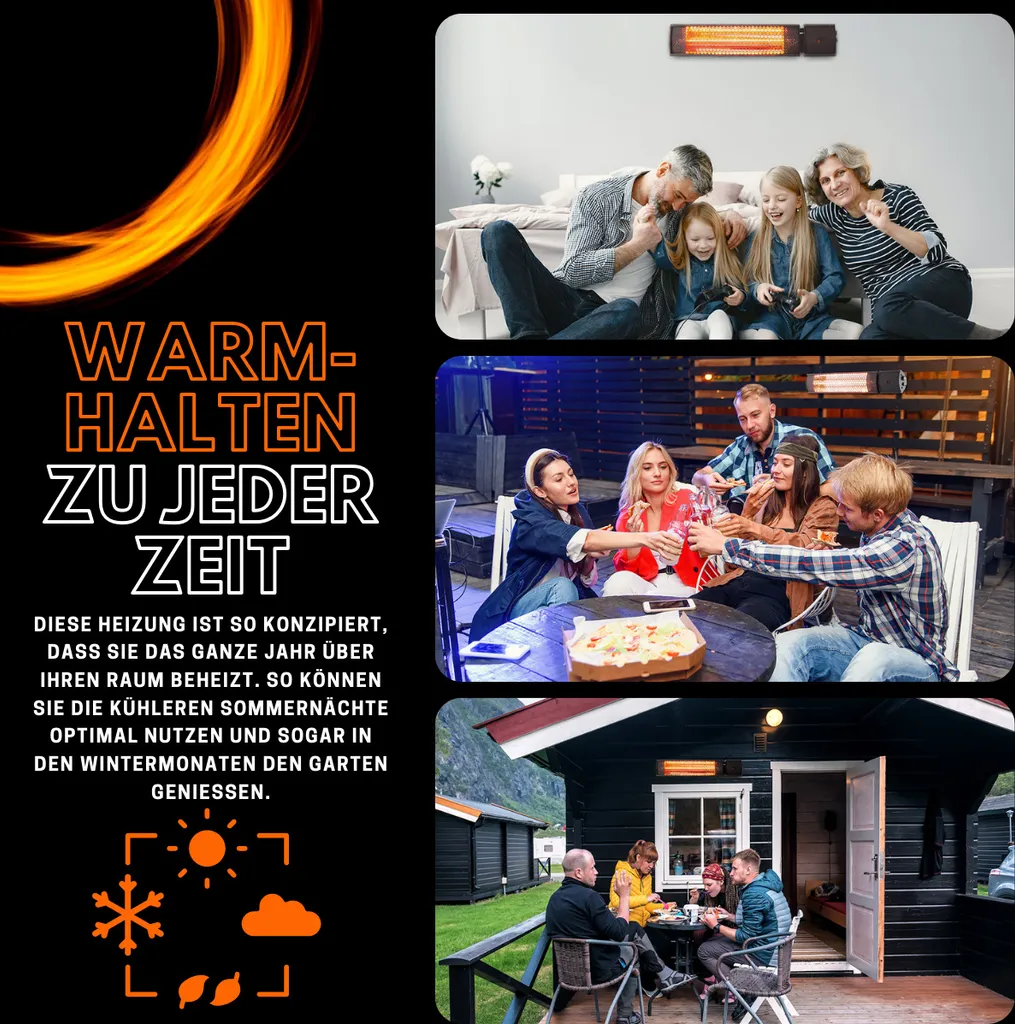 Jetzt können Sie ganze Bereiche Ihres Hauses aufheizen und sofort warm und gemütlich werden, ohne ein Vermögen für Ihre Heiz ausgeben zu müssen. Der Starlyf® Heizstrahler verwendet die Gold-Halogen-Lamp-Technology, die 3x schneller Wärme direkt an Sie erzeugt als eine Gasheizung! Diese Technologie erzeugt Hitzewellen wie die Sonne und bleibt draußen warm, auch wenn es schneit. Unabhängig von der Jahreszeit oder dem Wetter, kann diese Heizung das ganze Jahr über draußen bleiben! Sie können es auf der Veranda, in der Garage, im Abstellraum oder sogar im Badezimmer verwenden! Aufgrund der fortschrittlichen Wetterfestigkeit und des Überhitzungsschutzes ist der Starlyf® Heizstrahler ideal für Hausbesitzer, die nach einer Heizlösung suchen, um sowohl Innen- als auch Außenbereiche abzudecken, ohne sich jemals wieder um Regen, Staub oder Rost kümmern zu müssen!