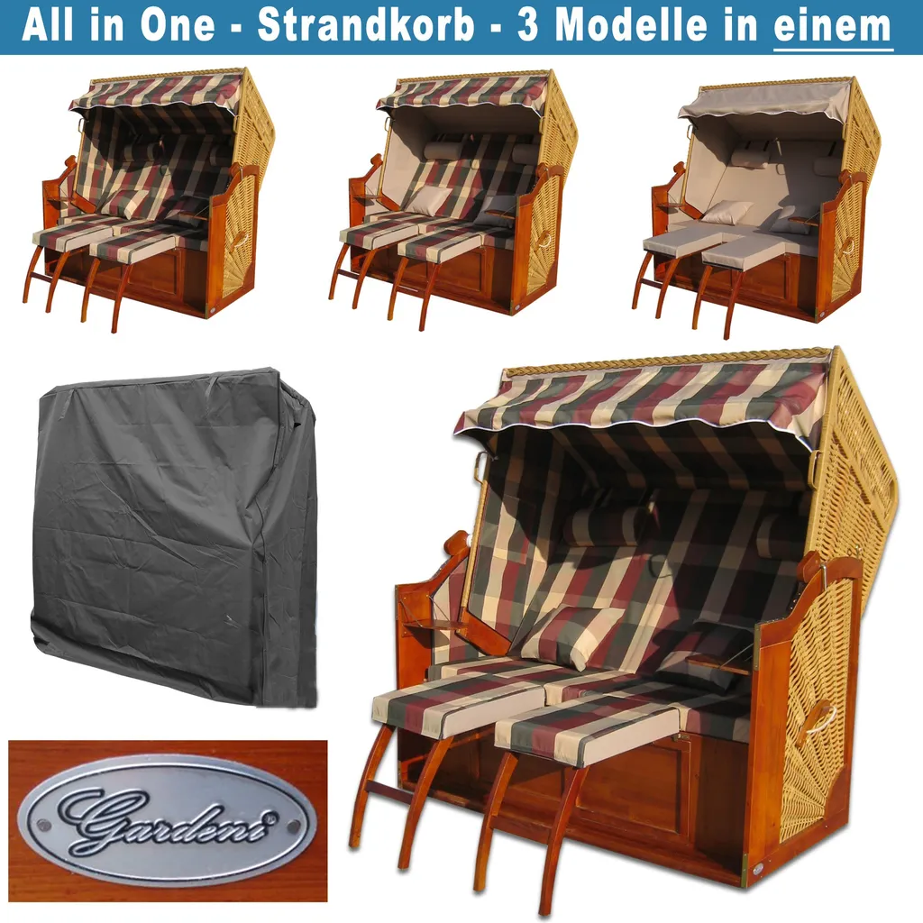 - Dieser Strandkorb Buxtehude XXL wird Ihnen mit zwei Bezügen geliefert, sodass Sie die Möglichkeit haben ihn in drei Varianten zu nutzen (siehe Bilder)