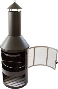Ihr Brennmaterial legen Sie ganz einfach auf den entnehmbaren Rost in der Feuerschale. Die entstehende Asche fällt so in den Feuerkessel und kann anschließend mühelos entfernt werden. Über den abnehmbaren Deckel am Rauchabzug kann entstehender Rauch abziehen und die Luftzufuhr erhöht werden. Vor möglichem Funkenflug und einem ungewollten Erlöschen des Feuers durch Wind sorgt die verriegelbare Gittertüre. Durch das Rundum-Gitter-Design der Türe können die Flammen jederzeit und von allen Seiten aus beobachtet werden.