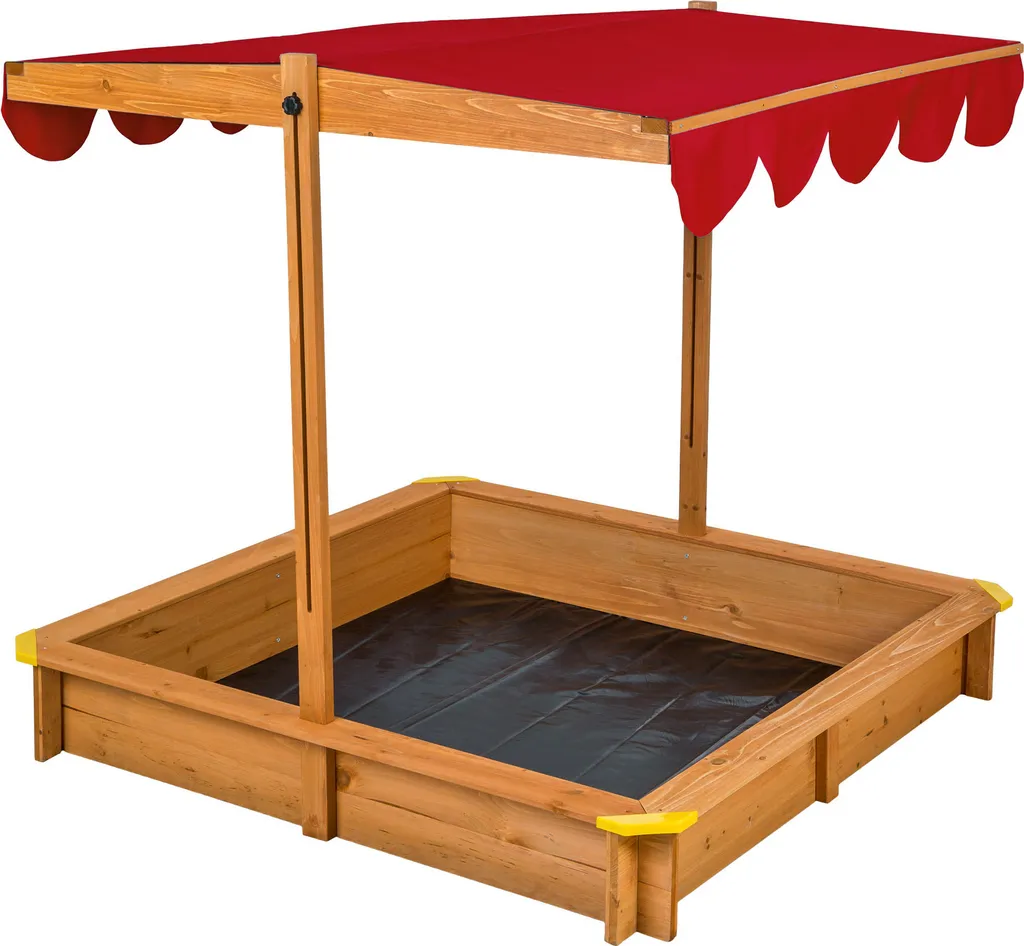 Toller Sandkasten mit verstellbarem Dach! Das perfekte Spielgerät für Deine Kinder. Der Sandkasten ist aus Tannenholz gefertigt und verfügt über eine wasserabweisende, lasierte Oberfläche. Eine wurzelfeste Bodenplane sorgt dafür, dass keine Feuchtigkeit von unten aufsteigt und sich keine lästigen Insekten oder Krabbeltiere im Sand wiederfinden. Praktisch: Der Sandkasten verfügt über ein wasserabweisendes, höhenverstellbares Sonnendach, welches die Kinder vor zu viel Sonne schützt. Hol Dir jetzt diesen schönen Sandkasten mit verstellbarem Dach für Deine Kinder in den Garten!
