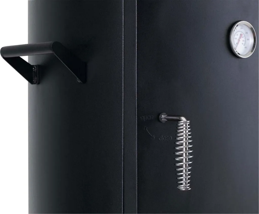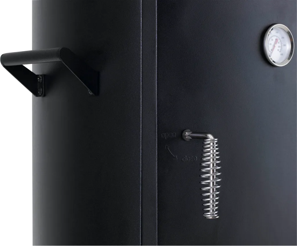 Dank der seitlichen Griffe bewegst du sogar diesen großen Räucherofen, am besten zu zweit, an einen Ort deiner Wahl.