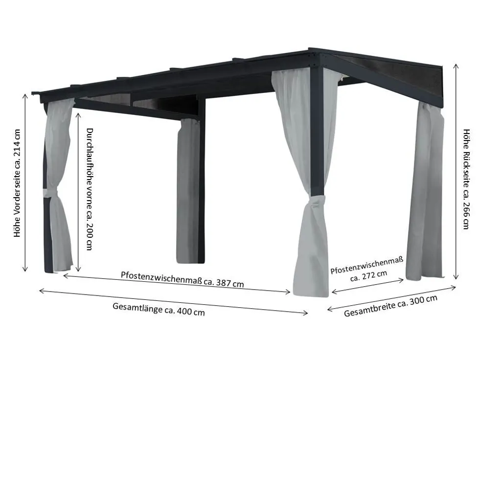 - Abstand der Pfosten (lange Seite): ca. 387 cm