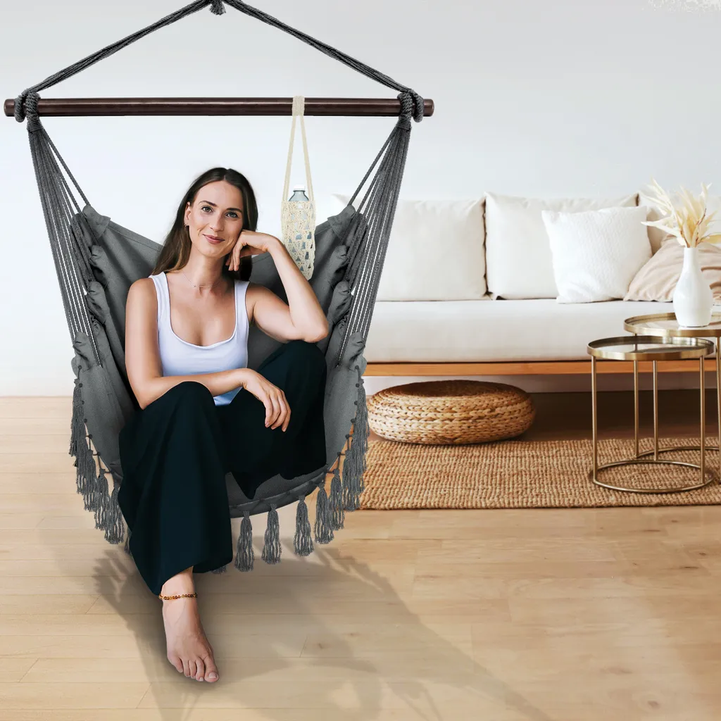 Der Hängesessel kann Indoor und Outdoor verwendet werden.
