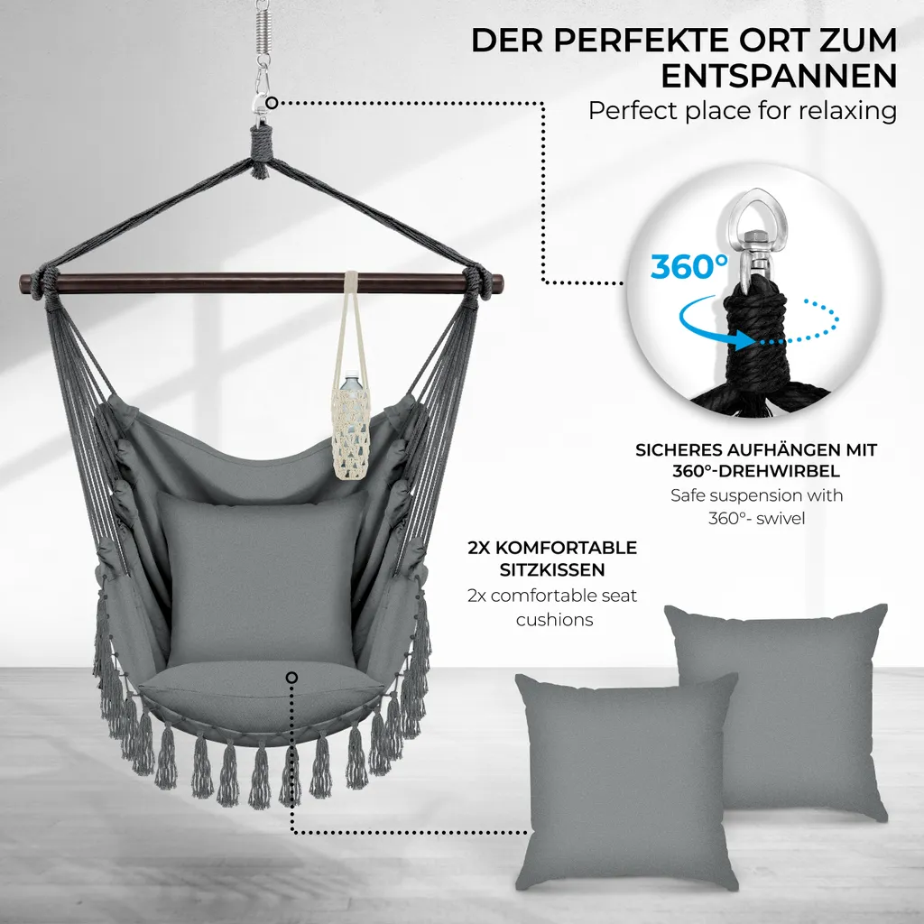 Mit dem modernen und bequemen tillvex Hängesessel können Sie entspannt eine schöne Zeit genießen.