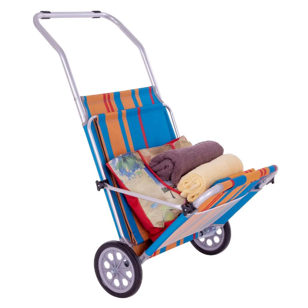 Die 5-fach verstellbare Rückenlehne mit praktischem Netz-Fach sorgt für angenehmen Liegekomfort. Platzsparend zusammenklappbar – einfacher Transport durch 2 stabile Räder.