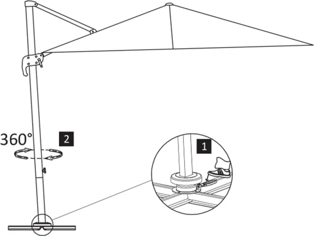 Hergestellt aus UV-beständigem und lichtechtem Polyester, bietet Ihnen die Sonnenschirmabdeckung optimalen Sonnenschutz und ist leicht zu reinigen. Er verfügt über einen stabilen Querträger, der für mehr Stabilität sorgt. Unser Gartenschirm lässt sich durch einfaches Drehen des Knopfes an der Stange einfach öffnen und schließen. Der Winkel der Abdeckung kann durch Drücken und Ziehen des Griffs nach oben und unten eingestellt werden. Die Mittelstange kann mit dem Pedal auch um 360 Grad gedreht werden. Der stabile, pulverbeschichtete Aluminiumstab und die 8 stabilen Rippen machen diesen Sonnenschirm sehr stabil und langlebig. Der Artikel ist einfach zu montieren.