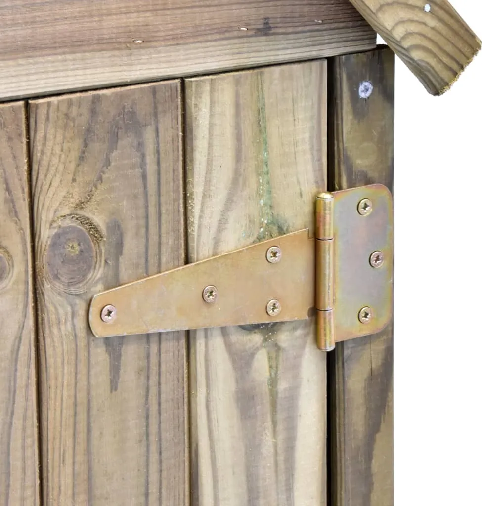 Dieser Schuppen aus hochwertigem, imprägniertem Kiefernholz ist äußerst langlebig und wetterfest. Das Dach ist mit Teerpappe bedeckt, die den Schuppen vor Feuchtigkeit schützt. Der Schuppen beinhaltet 4 große Regale, damit Sie Ihre Gießkannen, Rechen, Schaufeln oder andere Gartengeräte sowie andere Gegenstände ordentlich und organisiert aufbewahren können. Die Einzeltür sorgt für einen einfachen Zugang. Dieser Lagerraum ist einfach zu montieren.
