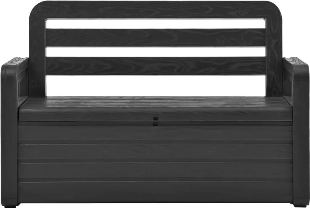 Diese Aufbewahrungsbank besteht aus Kunststoff mit Holz-Finish und lässt sich leicht mit einem feuchten Tuch reinigen. Unter dem Sitz befindet sich ein abschließbares Ablagefach mit einem Fassungsvermögen von 263 L. Es kann verwendet werden, um allgemeine Haushaltsgegenstände, unnötige Gartengeräte oder Möbelbezüge aufzubewahren.