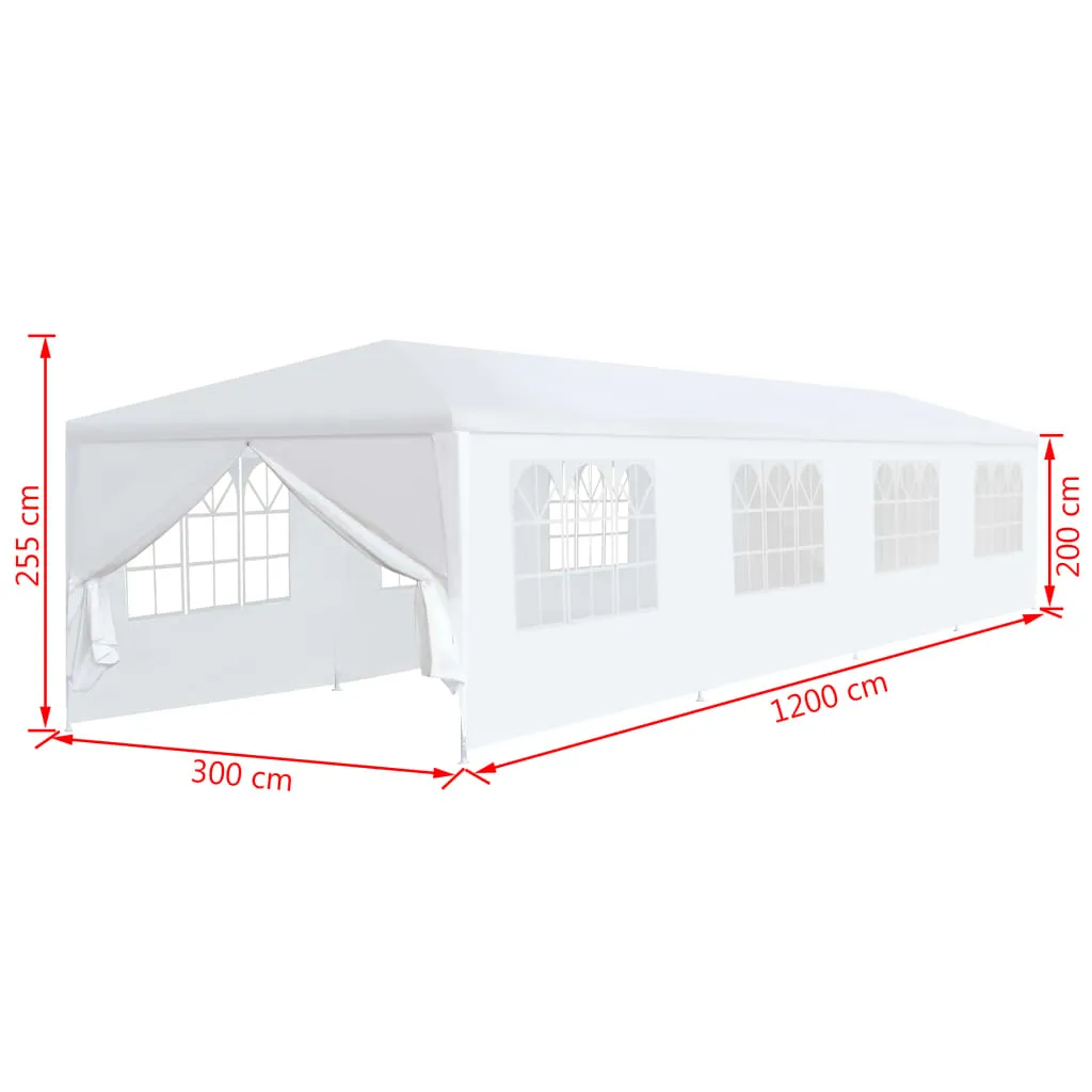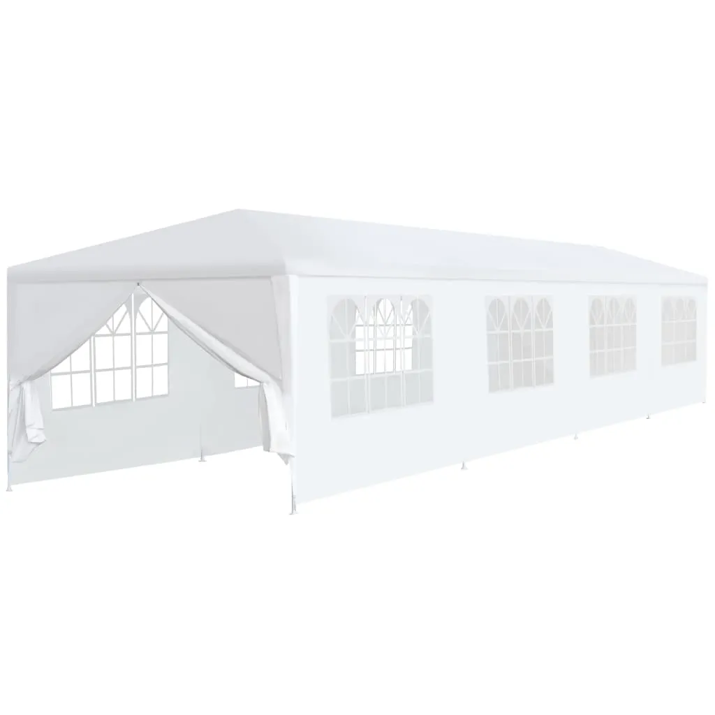 Hergestellt aus 100% Polyethylen, ist das Partyzelt UV-beständig und wasserfest. Das Gartenzelt hat 8 abnehmbare Seitenteile mit dekorativen Fenstern und 2 Türverkleidungen mit Reißverschlüssen, die für einen einfachen Zugang sorgen. Das Gestell ist aus rostfreiem Stahl gefertigt und somit sehr langlebig. Die Montage gelingt mühelos.