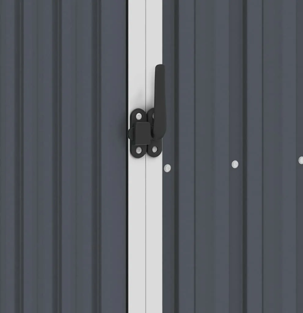 Da dieser Lagerschuppen aus verzinktem Stahl besteht, ist er wartungsarm und sehr langlebig. Regenwasser fließt dank seiner geneigten Konstruktion automatisch vom Dach ab.