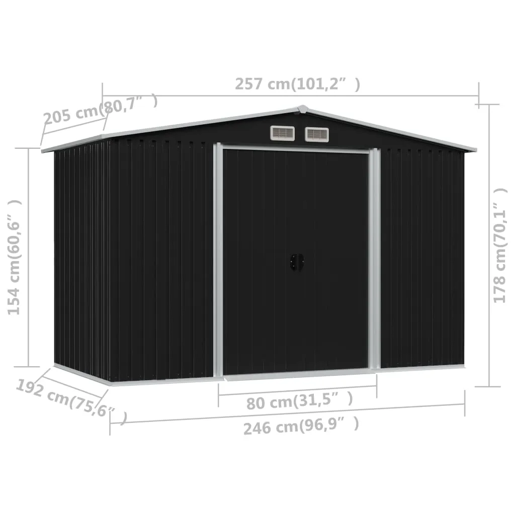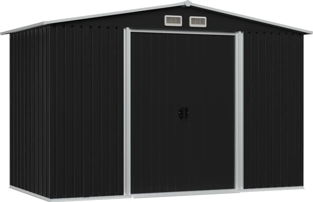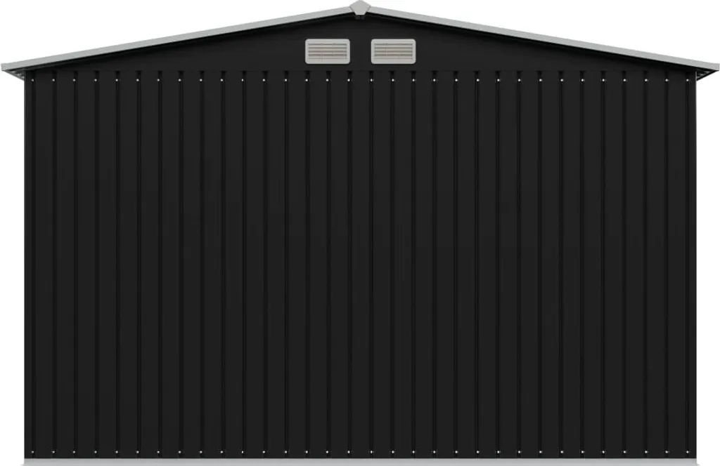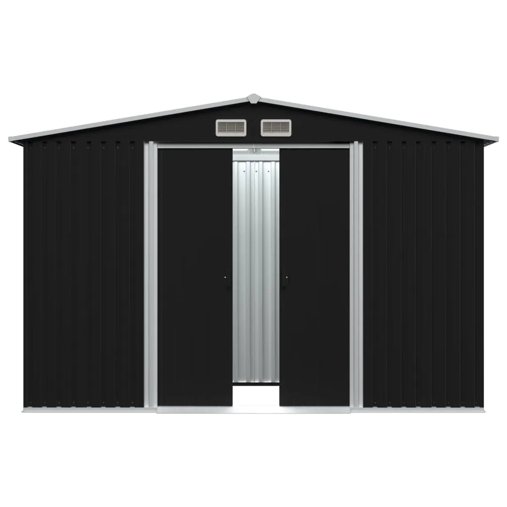 Dieser Gartenschuppen verfügt über 4 Entlüftungsöffnungen, 2 vorne und 2 hinten, die für eine hervorragende Luftzirkulation sorgen. Die doppelten Schiebetüren an der Vorderseite ermöglichen einen einfachen Zugang.