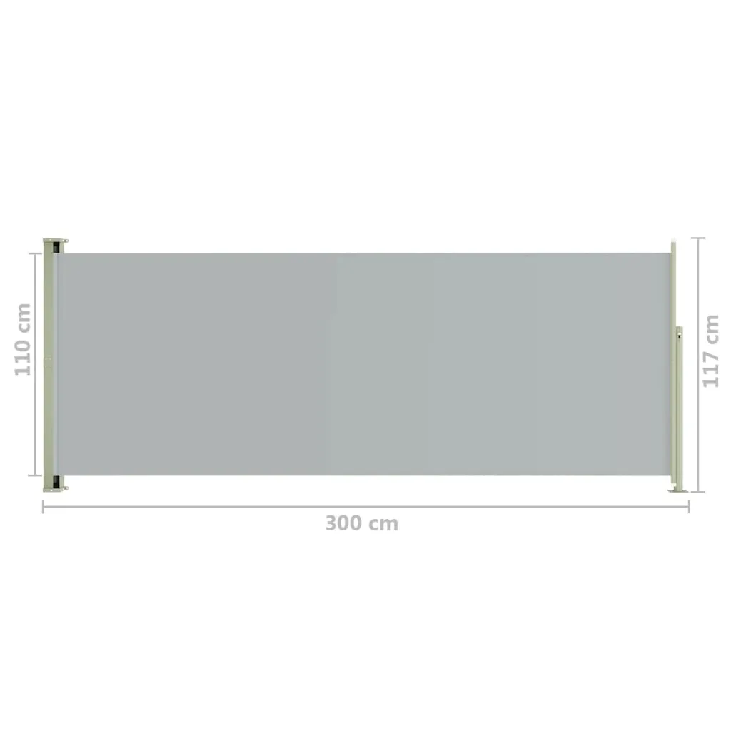 Der Sichtschutz besteht aus UV-beständigem und reißfestem Polyester. Die Kassette wird in vertikaler Position auf einem stabilen Eisensockel montiert, sodass sich die Seitenmarkise leicht herausziehen lässt. Die Markise verfügt zudem über eine automatische Rückrollfunktion.