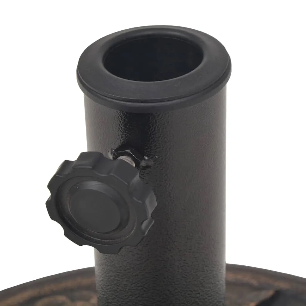 Dieser hochdekorative Sonnenschirmständer ist aus witterungsbeständigem Harz, sieht aber aus, als wäre er aus Bronze gegossen. Er hat einen Verschlussbolzen, um die Stange des Regenschirms im 57-mm-Rohr festzuhalten. Zwei Adapter sind im Lieferumfang enthalten, so dass er für Sonnenschirmstangen mit 38 und 48 mm Durchmesser geeignet ist.