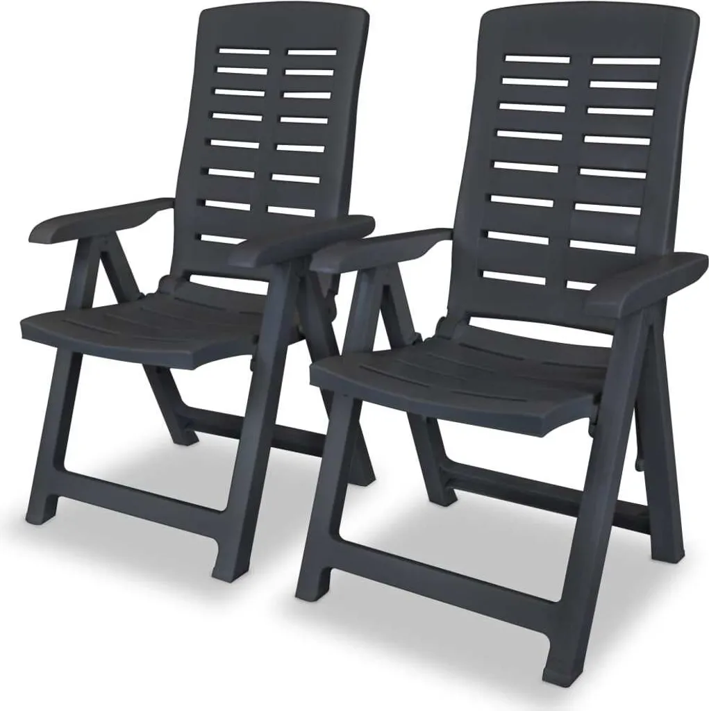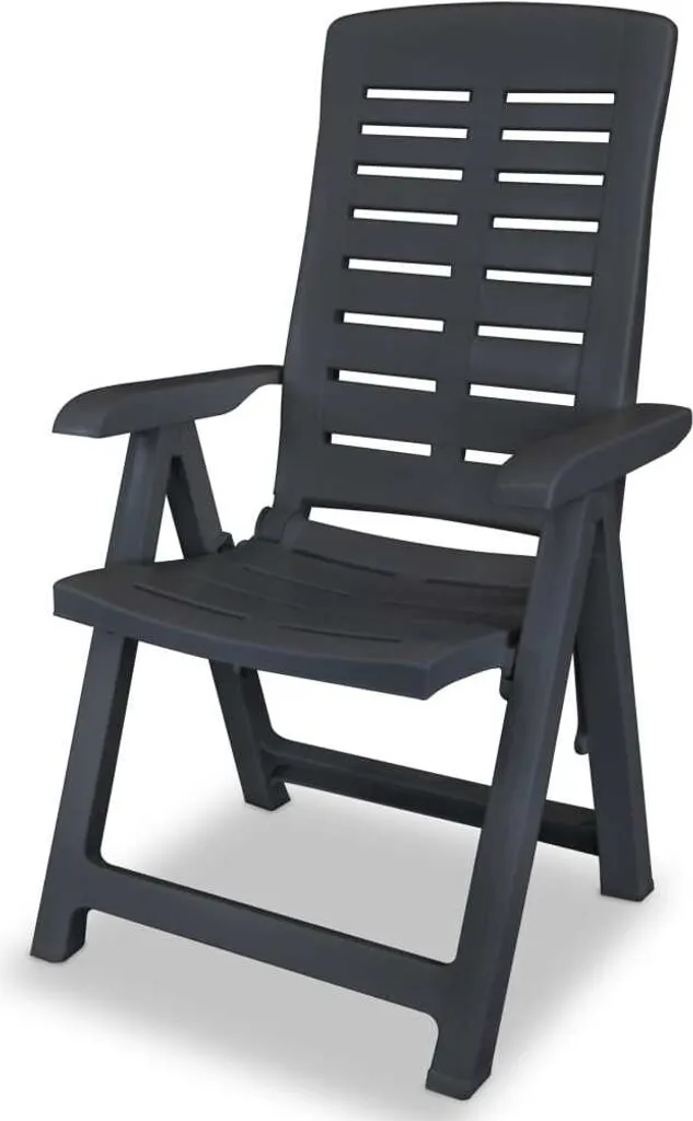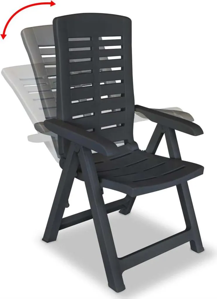 Die verstellbaren Stühle sind aus langlebigem Kunststoff gefertigt. Somit sind sie nicht nur unempfindlich gegen Witterungseinflüsse, sondern auch leicht zu reinigen. Die Rückenlehne lässt sich in 4 Positionen neigen, sodass Sie stets eine bequeme Sitzposition einnehmen können. Dank geringem Eigengewicht lassen sich die Gartenstühle einfach umher bewegen. Und sind sie einmal nicht in Gebrauch, können sie platzsparend zusammengeklappt werden.
