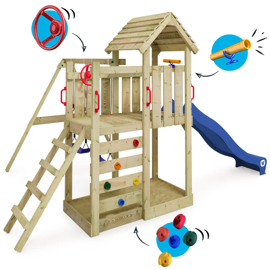 Die mächtigen Segel flattern im Nordwind, als die Piratenflotte auf die Schatzinsel zusteuert, angeführt vom berüchtigtsten Schiff, dem MultiFlyer. Die Crew verlässt das Schiff und bahnt sich ihren Weg durch den tropischen Dschungel auf der Suche nach dem berüchtigten Tempel des Opals. Dort angekommen stellt sich die Quest als keine einfache heraus: Versteckte Leitern und Kletterwände stellen die Schatzjäger ebenso auf eine Probe wie der Treibsand in den Höhlen. Doch die tollkühne Bande lässt sich auch von dem reißenden Wasserfall nicht aufhalten, der mit dicken Tropfen auf das Holzdach prasselt! Gemeinsam schaukeln sie über den rauschenden Fluss. Nun gilt es nur noch, die Riesenrutsche zu bewältigen, die direkt in die geheime Schatzkammer des Tempels führen soll. Für solch erfahrene Abenteurer ein Klacks! Bald wird ein weiterer Schatz den Weg in die Piratenhauptstadt finden! Fly, Wickey, fly…!