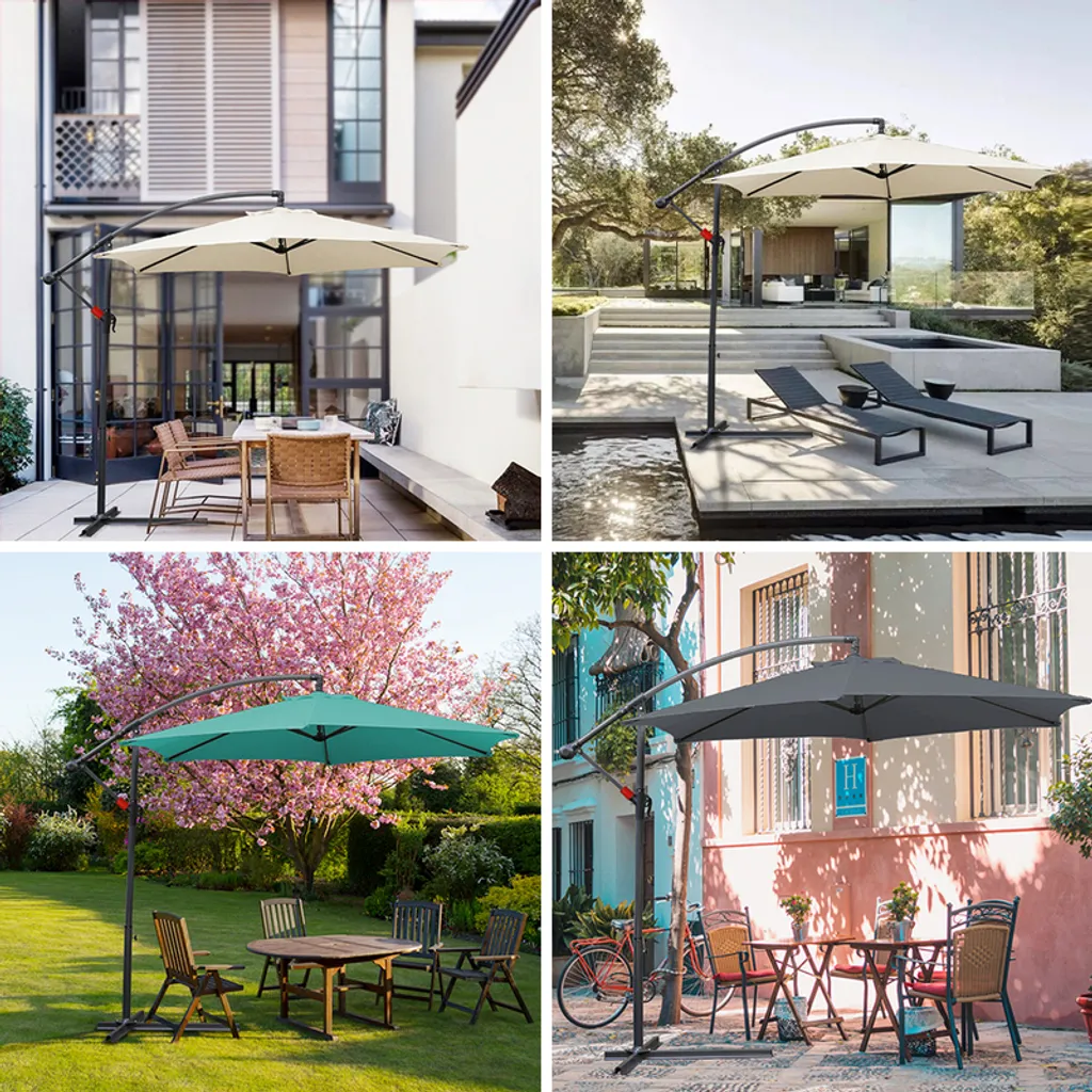 ¡ø Neigungswinkel stufenlos verstellbar- Freischwebender Schirm mit 8 Streben inkl. Handkurbel fuer leichtes Aufspannen Stufenlos in verschiedene Neigungswinkel einstellbar, bietet kontinuierliche Abdeckung auch ausserhalb des Tages