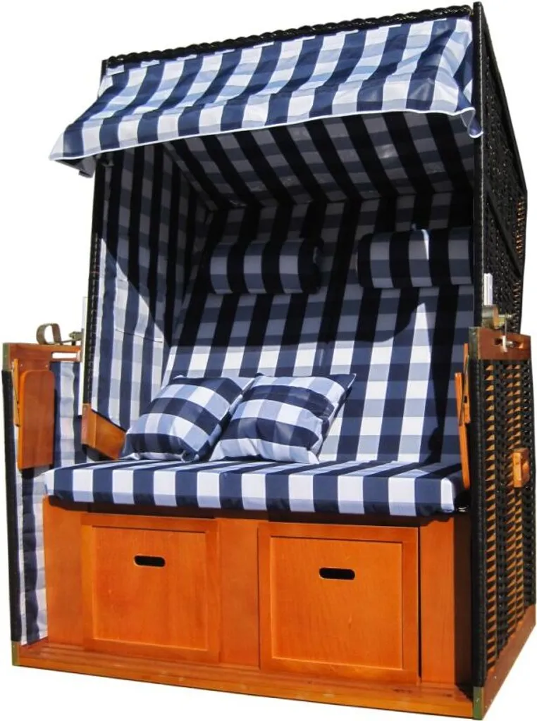 Wellness Strandkorb für das perfekte Urlaubsfeeling. Alle Hölzer sind witterungsbeständig behandelt.