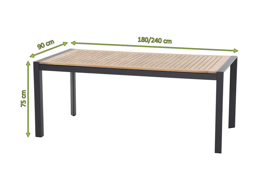 SIENA GARDEN Zurigo Esstisch, anthrazit, Alu/FSC Teak, 180/240×90 cm, ausziehbar